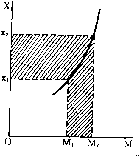 图5 图4和图5中的恩格尔曲线都是向右上方倾斜的,其需求收入弹性为正值,这表明是正常商品的恩格尔曲线。而且,图4、图5中的曲线,分别是必需商品和奢侈商品的恩格尔曲线,前者是凸的,后者是凹的。这两条曲线是表示必需商品和奢侈商品的需求量随着消费者收入的变化而变化的图式。一般地,恩格尔曲线的函数形式是: