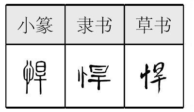 悍 金文; 篆hàn[旱(聲符)+忄(心,意符)→悍(《説文》:“悍,勇也。從心,旱聲。”悍:勇猛〈強悍〉;兇暴〈兇悍〉;強勁〈急悍〉。)] [西漢] 賈誼《治安策》:“陛下之臣雖有悍如馮敬者,適啟其口,匕首已陷其胸矣。” 悍*猂hàn(10画)