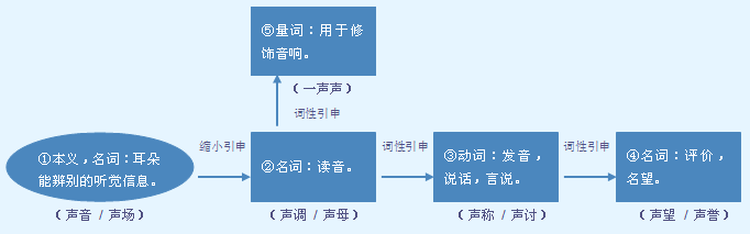 shēng ❶名声音。雷声|歌声|声响 →❷动发出声音;宣布。不声不响|声称 →❸名音讯;消息。销声匿迹|无声无息 →❹名名誉;威望。名声|声誉|声望 →❺名声母。双声叠韵 →❻名字调。四声|平声 →❼量用于发出声音的次数。一声枪响