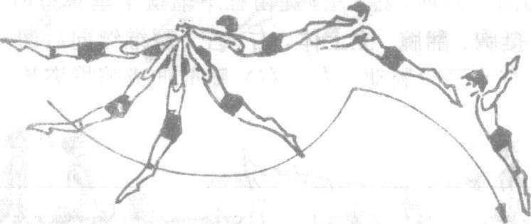 动作要领 由悬垂摆动开始,当后摆至杠前45°时,微收髋、含胸、沉肩,摆过杠垂直位时,向后上方用力甩腿,身体保持挺身姿势。当后摆至极点时,迅速制动。直臂压杠、顶肩推杠、挺胸、挺身,使身体腾起挺身落地。