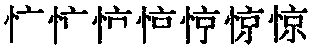 ◇ gniā恐怕;也许:~伊呣来gniā yī lái(恐怕他不来) ❍ 即阵好天紧来去,~恰等会落雨zītzûn hǒtnī gǐn láiki,gniā kāhdǎn êlóhhoô(现在晴天快点去,待会儿也许会下雨)。 惊驚{}四5730①名惊风。闽语。福建将乐〖 〗。②动操心。闽语。广东海丰:厝□(〖le〗)起咯,札就免~啰房子盖起来了,住就不用操心啦!③动乳汁充盈,从乳头流出。冀鲁官话。河北东部〖 〗。被嘬~了,嘀嘀嗒嗒流在衣襟上。④动(瓷器、玉器等)震伤。北京官话。北京〖 〗。小碗儿~了一道璺儿。⑤动吓(人);使害怕。⑴粤语。广东广州〖 〗。~到唔出得声吓得说不出话来。⑵闽语。福建厦门〖 〗。~死人吓死人‖汝看偌子~人你看多么吓人。广东揭阳〖 〗。鸟客枪声~走鸟被枪声吓跑‖你~到伊面青嘴〖 〗。你把他吓得脸青唇白。⑥形高兴。中原官话。河南洛阳〖 〗。他孩子当了模范,可把他给~透了。⑦形丑;难看。闽语。福建福州〖 〗。⑧形肮脏。闽语。福建福州。⑨形禽畜不驯良;怕生。⑴客话。江西瑞金〖 〗、上犹社溪〖 〗、赣州蟠龙〖 〗。⑵闽语。福建福鼎〖 〗。⑩动恐怕。⑴客话。广东中山南蓢合水〖 〗。⑵粤语。广东广州〖 〗。~你唔嚟怕你不来。香港新界锦田〖 〗。广东斗门斗门镇〖 〗、江门白沙〖 〗。⑶闽语。福建厦门〖 〗。苦~恐怕‖~会落雨怕会下雨。广东中山隆都〖 〗、潮阳〖 〗。   惊驚jīng❶骡马等受到突然刺激而狂奔或乱跳 △ 马~了。 ❷由于受到突然刺激而紧张、害怕 △ ~呆|胆战心~。 ❸使受惊;惊动 △ 打草~蛇|~天动地。 惊驚❶因突然的刺激而精神紧张:~奇︱~异︱~讶(ya)︱~诧(cha)︱~疑︱~慌︱~惶︱~恐︱~骇(hai)︱~愕(e)︱~悸(ji)︱~厥(jue)︱~吓(xia)︱~叫︱~醒︱~魂︱~险︱~叹︱~喜︱~悉︱吃~︱受~︱震~︱虚~︱压~︱~弓之鸟︱~涛骇(hai)浪︱~慌失措︱~恐万状丨心~胆战︱心~肉跳︱大~小怪︱大~失色丨触目~心丨宠辱不~丨石破天~丨受宠若~。 ❷惊动:~人丨~扰︱~醒︱~蛰zhe︱~天动地︱~心动魄︱打草~蛇︱自相~扰︱一鸣~人。 ❸骡马因害怕而狂奔不止:马~了。 惊jīng❶ 害怕:惊愕│一鸣惊人│心惊肉跳。 ❷ 惊动:惊扰│打草惊蛇。 ❸ 骡、马、牛等因害怕而狂奔,不受控制:牛惊了。 惊jīng❶由于得到突然的消息而精神紧张。 【词汇】惊讶︱惊恐︱惊慌︱吃惊︱震惊 【组词】大吃一惊︱胆战心惊︱处变不惊︱受宠若惊︱惊心动魄︱担惊受怕 【例句】小羊吃了一惊,温和地说:“我怎么会把您喝的水弄脏呢?” ❍ 马壮告诉我,司机今天不能来了,我心中一惊,那不是没人开车了吗? 【近义】荒︱恐︱吓 ❷打扰,惊动。 【词汇】惊扰︱惊动︱受惊 【组词】石破天惊︱打草惊蛇︱惊动四邻︱惊天动地 【例句】不敢高声语,恐惊天上人。 ❍ 春去花还在,人来鸟不惊。 ❍ 某建筑工地夜间野蛮施工,致使附近居民的一个婴儿受惊,群众意见很大。 【近义】扰 惊jīng惊动。《天问》:“既惊帝切激。”毛奇龄补注:“惊,震也。”张惠言《七十家赋钞》:“此句言武王弓矢以伐纣,能大后稷之业,震惊于纣,切激而数其罪,故后世逢长也。” 惊jīng❶因为受惊过度而产生变态精神,容易恐惧。如:那一回就把他吓~了,听见一点儿动静儿就哆嗦。/“饿~了”过度饥饿造成了对饥饿的恐惧,因而喜欢暴食。 ❷(瓷器、玉器等)震伤。如:小碗儿~了一道璺儿。 惊jing惊诧(cha) 惊动 惊愕 惊骇 惊慌 惊惶 惊魂 惊悸 惊惧 惊厥1 惊恐 惊雷 惊奇 惊扰 惊人 惊叹 惊喜 惊吓 惊险 惊醒 惊讶 惊疑 惊异 惊蛰(zhe) 吃惊 大惊 受惊 虚惊压惊 震惊 惊叹号 惊堂木 惊弓之鸟 惊慌(惶)失措 惊魂未定惊恐万状 惊世骇俗 惊涛骇浪 惊天动地 惊喜交加 惊险小说 惊心动魄 大惊失色 大惊小怪 担惊受怕 又惊又喜 打草惊蛇 宠辱不惊 一鸣惊人 处乱不惊 胆战心惊 石破天惊 惊天地,泣鬼神为人不做亏心事,夜半敲门心不惊 惊jing❶害怕;精神由于突然刺激而紧张不安:急促的敲门声使她一~|身上~出冷汗来|听到这个消息,我吃了一~。 ❷惊动:蛇被脚步声~得窜出了草丛|猎狗的叫声~跑了野兔。 ❸骡马因害怕而狂跑不受控制:马被枪声~了,狂奔不止|辕马~了,马车失去了控制 惊jīng❶因突然的刺激而精神震动:雨村听了,如雷震一~,方想起往事。(四·79)(司棋二人)忽被鸳鸯~散,那小厮早穿花度柳从角门出去了。(七二·1748) ❷使惊恐:昨儿原是吃了酒,~了老太太的驾了,今儿来领罪。(四四·1018)深院~寒雀,空山泣老鸮。(五十·1154) ❸惊奇:刘姥姥一看,又~又喜。~的是一连十个(杯),挨次大小分下来。(四一·936)