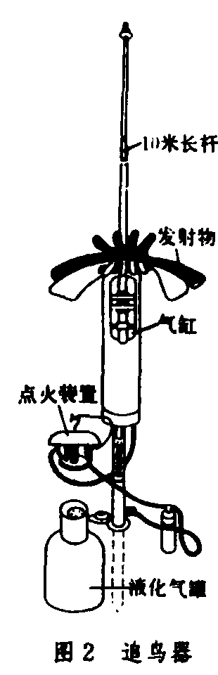 释义 | 惊鸟器bird scarer利用鸟类听觉对音响、超声波、颜色或运动物件的敏感性,驱赶鸟类、防治鸟害的器械。很早以前农民就用稻草扎成人的形状,再在稻草人的手上绑上纸带或扇子,随风飘摇惊吓麻雀。有的为了提高驱赶效果,将稻草人悬挂起来,能随风改变方向,甚至在手的部位安装有发音装置,成了会动、会发声的稻草人。这就是较原始的惊鸟器。随着科学技术的进步,人们已较成功地研制出用来恐吓和驱赶鸟类的音响和光变幻装置。 图1 全自动惊鸟器 超声惊鸟器 以2~30千赫的超声冲击波冲击鸟的中枢神经,使鸟产生恐怖感。用特殊的振荡电路,波的特性不断变化,振荡的持续时间为1~60秒,停歇时间0.2~10分钟,驱赶乌鸦、麻雀、鸽子和白头翁等有良好效果。 光变幻装置惊鸟器 有一种是在4.5米高的立杆上使3米长的横竿旋转,带动金属丝和旗子在空气中旋转,产生光变幻作用,并可增强赶鸟效果。图2是一种光变幻装置追鸟器,由鸟形薄片发射物、10米铝制长杆、气缸、点火装置和丙烷气瓶等组成。气体爆炸使鸟形黑色和黄色薄片沿直杆上下运动,酷似鸟在空中飞翔,能使鸟类惊恐而飞离。夜间可更换一种涂有夜光涂料的蝶形板,发出青白光焰,可防夜行性动物的为害,有效作用面积约1公顷。爆音惊鸟器也可安装在追鸟器上,使声光效果结合,驱鸟效果更佳。 为了不让鸟类对某一声音和光产生适应性,声和光必须经常变化以产生新的刺激,才能达到有效的驱赶目的。同时,还应加强对鸟类习性的研究,开发更多更有效的惊鸟器。 惊鸟器bird scarer又称驱鸟器。利用声、光等物理方法来驱除鸟害的器械。如将雀、鸦受惊后发出的异常声音录下来,用扩音器播放,便产生驱赶效果。还有一种自动惊鸟器,它以间隔的爆响声,使鸟受惊逃窜。 |