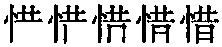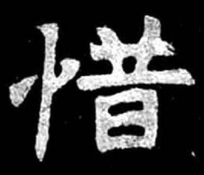 【提示】日中间的横,宋体与左右两边相接,楷体与左边相接,与右边相离。 *惜xī11画 心部 (1) 对人的不幸或事情的意外感到哀伤、遗憾: 痛~|惋~|可~。 (2) 珍爱: ~阴|珍~|爱~|~墨如金。 (3) 吝啬;舍不得: ~力|吝~|不~一切代价。 惜 ☚ 惻 愍 ☛ 惜xī小篆以来形声字。从忄(心),昔声。本哀伤,可惜义。又引申为感到遗憾。如:惜未成功。引申为爱惜,重视,不随便丢弃。如:惜阴(指爱惜时间)|爱惜(如爱惜公物)。组词如:怜惜。又引申为舍不得,吝(lìn,当用而舍不得用)。如:惜别|不惜牺牲。组词如:吝惜。 惜★常◎常