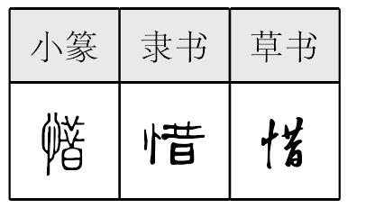 xī形声,从心,昔声,本义为哀伤、同情,引申为珍视、舍不得。 【辨析】 台湾读xí。 |