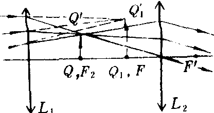 释义 | 惠更斯目镜 惠更斯目镜huigengsimujing一种通用的目镜。荷兰物理学家C.惠更斯发明。由同种玻璃(常用冕玻璃)制成的两个平凸透镜L1和L2组成。向场镜L1的凸面向着被观察的物体,接目镜L2的平面接近观察者的眼睛。L1的焦距f′1约为L2的焦距f′2的1.5~3倍,实际上常取2倍。L1和L2之间的距离d等于该二透镜焦距之和的一半,即d=(f′1+f′2)/2,这正是消除横线色差的条件。由计算可知,整个目镜系统的前焦点F在L1和L2之间,后焦点F′在L2之后不远的地方(如图)。由前面物镜所成的实像Q1Q′1位于整个系统的前焦点F处,它对L1来说是一个虚物(对整个目镜而言也是虚物),它经L1所成的QQ′恰在L2的前焦点F2处,于是,通过L2在无穷远处成一放大的虚像,以供眼睛观察。 ☚ 目镜 冉斯登目镜 ☛ |