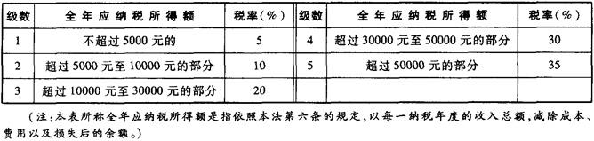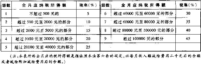 释义 | 中华人民共和国个人所得税法 第一条 在中国境内有住所,或者无住所而在境内居住满一年的个人,从中国境内和境外取得的所得,依照本法规定缴纳个人所得税。 在中国境内无住所又不居住或者无住所而在境内居住不满一年的个人,从中国境内取得的所得,依照本法规定缴纳个人所得税。 第二条 下列各项个人所得,应纳个人所得税: 一、工资、薪金所得; 二、个体工商户的生产、经营所得; 三、对企事业单位的承包经营、承租经营所得; 四、劳务报酬所得; 五、稿酬所得; 六、特许权使用费所得; 七、利息、股息、红利所得; 八、财产租赁所得; 九、财产转让所得; 十、偶然所得; 十一、经国务院财政部门确定征税的其他所得。 第三条 个人所得税的税率: 一、工资、薪金所得,适用超额累进税率,税率为百分之五至百分之四十五(税率表附后)。 二、个体工商户的生产、经营所得和对企事业单位的承包经营、承租经营所得,适用百分之五至百分之三十五的超额累进税率(税率表附后)。 三、稿酬所得,适用比例税率,税率为百分之二十,并按应纳税额减征百分之三十。 四、劳务报酬所得,适用比例税率,税率为百分之二十。对劳务报酬所得一次收入畸高的,可以实行加成征收,具体办法由国务院规定。 五、特许权使用费所得,利息、股息、红利所得,财产租赁所得,财产转让所得,偶然所得和其他所得,适用比例税率,税率为百分之二十。 第四条 下列各项个人所得,免纳个人所得税: 一、省级人民政府、国务院部委和中国人民解放军军以上单位,以及外国组织、国际组织颁发的科学、教育、技术、文化、卫生、体育、环境保护等方面的奖金; 二、国债和国家发行的金融债券利息; 三、按照国家统一规定发给的补贴、津贴; 四、福利费、抚恤金、救济金; 五、保险赔款; 六、军人的转业费、复员费; 七、按照国家统一规定发给干部、职工的安家费、退职费、退休工资、离休工资、离休生活补助费; 八、依照我国有关法律规定应予免税的各国驻华使馆、领事馆的外交代表、领事官员和其他人员的所得; 九、中国政府参加的国际公约、签订的协议中规定免税的所得; 十、经国务院财政部门批准免税的所得。 第五条 有下列情形之一的,经批准可以减征个人所得税: 一、残疾、孤老人员和烈属的所得; 二、因严重自然灾害造成重大损失的; 三、其他经国务院财政部门批准减税的。 第六条 应纳税所得额的计算: 一、工资、薪金所得,以每月收入额减除费用二千元后的余额,为应纳税所得额。 二、个体工商户的生产、经营所得,以每一纳税年度的收入总额,减除成本、费用以及损失后的余额,为应纳税所得额。 三、对企事业单位的承包经营、承租经营所得,以每一纳税年度的收入总额,减除必要费用后的余额,为应纳税所得额。 四、劳务报酬所得、稿酬所得、特许权使用费所得、财产租赁所得,每次收入不超过四千元的,减除费用八百元;四千元以上的,减除百分之二十的费用,其余额为应纳税所得额。 五、财产转让所得,以转让财产的收入额减除财产原值和合理费用后的余额,为应纳税所得额。 六、利息、股息、红利所得,偶然所得和其他所得,以每次收入额为应纳税所得额。 个人将其所得对教育事业和其他公益事业捐赠的部分,按照国务院有关规定从应纳税所得中扣除。 对在中国境内无住所而在中国境内取得工资、薪金所得的纳税义务人和在中国境内有住所而在中国境外取得工资、薪金所得的纳税义务人,可以根据其平均收入水平、生活水平以及汇率变化情况确定附加减除费用,附加减除费用适用的范围和标准由国务院规定。 第七条 纳税义务人从中国境外取得的所得,准予其在应纳税额中扣除已在境外缴纳的个人所得税税额。但扣除额不得超过该纳税义务人境外所得依照本法规定计算的应纳税额。 第八条 个人所得税,以所得人为纳税义务人,以支付所得的单位或者个人为扣缴义务人。个人所得超过国务院规定数额的,在两处以上取得工资、薪金所得或者没有扣缴义务人的,以及具有国务院规定的其他情形的,纳税义务人应当按照国家规定办理纳税申报。扣缴义务人应当按照国家规定办理全员全额扣缴申报。 第九条 扣缴义务人每月所扣的税款,自行申报纳税人每月应纳的税款,都应当在次月七日内缴入国库,并向税务机关报送纳税申报表。 工资、薪金所得应纳的税款,按月计征,由扣缴义务人或者纳税义务人在次月七日内缴入国库并向税务机关报送纳税申报表。特定行业的工资、薪金所得应纳的税款,可以实行按年计算、分月预缴的方式计征,具体办法由国务院规定。 个体工商户的生产、经营所得应纳的税款,按年计算,分月预缴,由纳税义务人在次月七日内预缴,年度终了后三个月内汇算清缴,多退少补。 对企事业单位的承包经营、承租经营所得应纳的税款,按年计算,由纳税义务人在年度终了后三十日内缴入国库,并向税务机关报送纳税申报表。纳税义务人在一年内分次取得承包经营、承租经营所得的,应当在取得每次所得后的七日内预缴,年度终了后三个月内汇算清缴,多退少补。 从中国境外取得所得的纳税义务人,应当在年度终了后三十日内,将应纳的税款缴入国库,并向税务机关报送纳税申报表。 第十条 各项所得的计算,以人民币为单位。所得为外国货