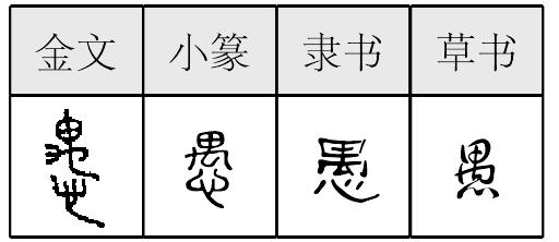 【提示】禺,9画,第七笔中间一竖穿过,第八笔是横,末笔是点,不要把第七、八笔连成一笔。禺第三笔的横,宋体与左右两边相接,楷体与左右两边相离。 *愚yú13画 心部 (1) 傻;笨: ~蠢|~笨|~昧|~不可及|大智若~。 (2) 欺骗;蒙蔽: ~弄|~民政策。 (3) 谦辞(称与自己有关的): ~见|~意|~兄|~以为。 愚 ☚ 愉 戇 ☛ 愚yú战国以来的形声字。从心,禺(yù,一种猴)声。傻,笨义。如:愚人|愚昧无知。组词如:愚蠢。转为动词,使愚蠢。如:愚民政策。又愚弄,欺骗,耍义。如:愚弄人|为人所愚。引申为谦词。如:愚见。 愚★常◎常