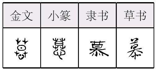 mù形声,从心,莫声,本义为思念,引申为敬仰、羡慕,希望自己也有某种有利条件或好处。 |