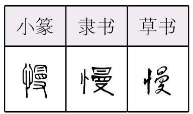 màn形声,从心,曼声,本义为怠惰,引申为态度冷淡、不在意、速度低等。 【辨析】 慢/缓/徐/迟 见469页“徐”。慢(1)见〖幂(màn)〗。 (2) 见〖漫〗❶。 |