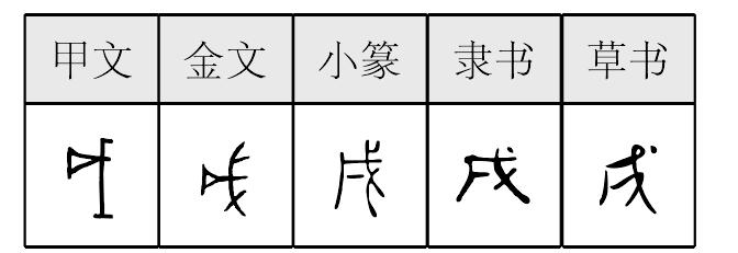 另见:计算 报告 用时间 计时器 ☚ 计时法 D 社会 ☛ 戌xū❶(地支的第十一位) the eleventh of the twelve Earthly Branches ❷(戌时) the period of the day from 7 p.m. to 9 p.m. ❸(姓氏) a surname: ~ 盈孙 Xu Yingsun ◆戌时 the period of the day from 7 p.m. to 9 p.m. 戌the eleventh of the twelve Earthly Branches 戌(xū)“ ,灭也。九月,阳气微,万物毕成,阳下入地也。五行,土生于戊,盛于戌。从戊含一。凡戌之属皆从戌。”(辛聿切) 戌为死灭。古用十二地支纪月,戌表示夏历九月,此时阳气微弱,万物都已成熟,阳气向下进入土中。五行中“土”位居于中央的戊位,在戌月(九月)气势最盛,故戌从戊含一(“一”表示阳)。段玉裁有不同看法,他从钟鼎文的角度疑其形体为斧戉之戉,借为辰名,小篆为其变体。张舜徽说“戌”为生滅之滅本字,加火为烕,又加水为滅。 甲骨文作 、 、 、 、 ,象古兵器,与戊、戉等皆为斧钺之形。姚孝遂说:“契文戌字作 、 、 诸形,变异多端,要皆象斧钺类之兵器。徐灏《段注笺》‘疑即斧戉之戉,借为辰名,小篆变其体耳’。此即罗振玉说之所本。”[1]金文作 ,战国包山楚简作 、 。睡虎地秦简作 ,已与小篆基本一致了。 戌部无属字。 *戌·qu6画 戈部 【屈戌儿】 铜制或铁制的带两个脚的小环儿,钉在门窗或箱柜上,用来挂锁或钌铞。 另见xū(448页)。