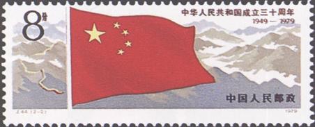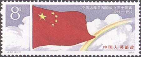 释义 | 中华人民共和国成立三十周年(第一组) 发行日期:1979年10月1日 齿孔度数: 印刷版别:影写版 票幅:62×26 全张枚数:40(4×10) 设计者:万维生 印刷:北京邮票厂 (1)8分 国旗 1200万枚 (2)8分 国旗 1200万枚 (1)-(2) 2枚全 |