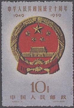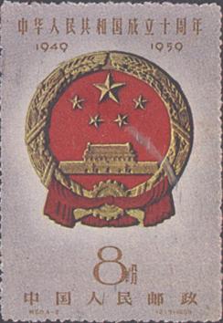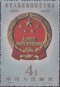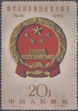 释义 | 中华人民共和国成立十周年(第二组) 发行日期:1959年10月1日 齿孔度数:14 印刷版别:胶版 图幅:28×46 全张枚数:24(6×4) 设计者:孙传哲 印刷:北京人民印刷厂 (1)4分 国徽 600万枚 (2)8分 国徽 1000万枚 (3)10分 国徽 400万枚 (4)20分 国徽 400万枚 (1)-(4) 4枚全 |