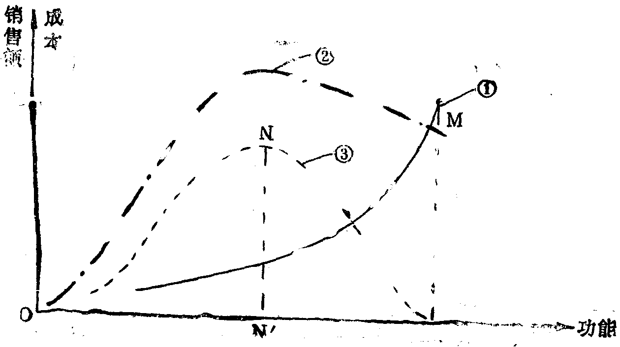 释义 | 成本一功能分析价值工程中计算产品或零部件功能成本的方法。涉及成本、功能和价值等因素,三者关系为:价值=功能/成本。其中,功能指产品或零部件的具有某种意图的特定目的或用途。有使用功能或基本功能、外观功能或辅助功能之分,如质量、寿命、效能、可靠性等;价值即成本的效益。通过成本—功能分析,以保证在产品具有必要功能的前提下,尽可能降低成本。 一般地说,功能与成本以及功能与销售额、利润之间的关系可图示如下: ❷为功能一销售额曲线。随着产品功能的改善,销售额相应增加,但当达到一定水平后,成本增长,销售额反而下降。曲线❶和 ❷的交点M,表示销售额和成本相等。曲线 ❸是功能一利润曲线。它表明功能和成本的匹配在N′点附近是较合理的。 |