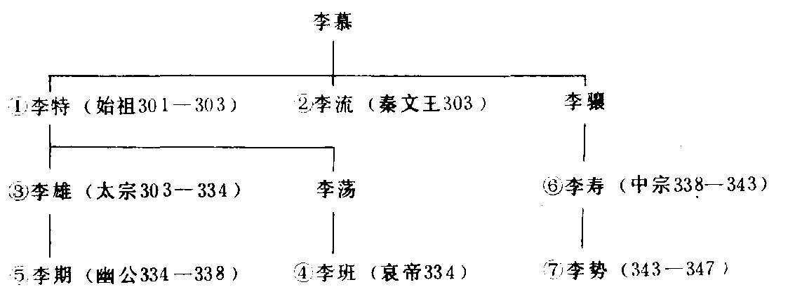 释义 | 成汉秦以后西南地区的第一个少数民族封建割据政权,也是 “十六国” 中最早建立的国家之一。西晋永宁元年 (301年) 巴氐族首领李特在蜀中领导甘肃流民起义。永兴元年 (304年) 十月,李特子李雄自称成都王,改李特年号建初为建兴。建兴二年 (306年) 六月,李雄即皇帝位,再改元晏平,国号大成。到东晋咸康四年 (338年) 时,李雄侄李寿又改国号为汉。历史上因之合称为成汉。全盛时疆土东守三峡,南至南中,西尽岷邛,北据汉中,相当于今四川盆地及陕、滇、黔等省部分地区。历5代、43年。其间李雄在位的31年(304年~334年),政治比较宽松,社会相对稳定,经济上开始复苏。以后即陷入混乱局面。东晋永和三年 (347年) 被桓温灭掉。 成汉十六国之一。巴氐人李氏所建。西晋永宁元年(301),巴氐族豪强李特率领来自西北略阳、天水等郡的流民在蜀起义。太安二年(303)李特战死,子李雄率流民起义军继续战斗,永兴元年(304)攻克成都,控辖益州(今四川),称成都王。建兴三年(306)任用蜀地汉族地主范长生辅政,自称皇帝,都成都,国号大成。玉衡二十四年(334)雄死,子侄争帝位相互夺杀。玉恒四年(338)雄侄李寿称帝后,改国号汉,故史称成汉。辖境有今四川和云南、贵州的一部分。嘉宁二年(347)为东晋桓温所灭。共历四主,凡四十五年。 成汉十六国之一,李雄为开国君主。301年,流民领袖李特率流民起义,反对西晋统治。303年,特战死,其弟李流继领其兵。不久,流死,特子李雄率众下成都,据益州,304年,李雄称成都王。306年,李雄改称皇帝,建都成都,国号大成,成汉建立。347年,东晋权臣桓温伐蜀,成汉李势兵败出降,成汉国亡。成汉共存在44年,历6主。 成汉 成汉十六国割据政权名。巴氐 (賨) 族李雄所建。西晋惠帝时,李特随关西六郡饥民10余万人流入蜀地求食,301年李特、李流兄弟于绵竹倡流民起义,攻取广汉,称益州牧。303年李特被益州刺史罗尚所杀,其子李雄继为帅。次年攻取成都称成都王。304年李雄称帝,都成都,国号成。李雄死后,子侄争位,相互残杀。汉兴元年 (338) 李寿为帝,改国号为汉,史称成汉。统治地区有今四川东部和云南、贵州的一部分。347年为东晋桓温所灭。共5主,历44年 ☚ 前赵 前凉 ☛ 成汉十六国之一。又称大成国。西晋永安元年(304)始建国。晋惠帝元康八年(298),频岁大饥,※ 賨民(一称巴氐)※李特等率流民数万家就谷汉中,遂入巴蜀,居于巴西宕渠。因随军征讨赵廞叛乱有功,拜宣威将军、长乐乡侯。被流民推为镇北大将军。永宁元年(301), 自称大将军、大都督。太安二年(303),为益州刺史罗尚败于绵竹赤祖(在今四川德阳县境内),遇害。次年,其少子※李雄称成都王,年号改为建兴,置百官。光熙元年(306),称帝,号大成,改元晏平,定都成都。据三蜀、梓潼、巴西等数郡。除晋法,约法七章,发展生产,增强实力,扩充地域。后,汉中、牂柯平夷(在今贵州毕节)、南广(今云南盐津)皆归之。成汉玉衡二十二年(332),宁州14郡,除牂柯郡外,13郡俱归入大成版图。次年,以南中12郡为建宁国,封李寿为建宁王。其版图东到巴东,北至汉中、仇池(今甘肃成县、文县一带),西达汉嘉、沈黎(今四川雅安),南抵宁州(今云南晋宁)。二十四年(334),李雄病故,子侄争位,互相攻杀,太子李班即位不久,被李期刺杀,期自立为王。成汉玉恒四年(338),李寿克成都,废李期为邛都公。四月,改国号汉,故史称成汉。李氏皇族内讧不断,李寿肆杀李始及兄弟10余人,又杀李雄诸子,并滥用刑罚,耽于奢侈。成汉汉兴六年(343)寿卒,子李势即位。嘉宁元年(346),太保李奕从晋寿(今四川广元南)举兵反。东晋荆州刺史桓温率军伐成汉,兵临成都。二年三月,李势降,成汉亡。李势及宗室被徙于建康(今南京)。自李雄改国号大成,共历5主,凡42年。 附:成汉诸帝世系 成汉十六国之一。公元304年巴氐贵族李雄建立。雄始号成都王,306年称帝,国号大成,都成都。338年其侄寿改国号为汉,故史称成汉。该政权是在流民起义中建立,巴氐族又是内迁少数族中汉化程度最高者,故吏治清明,政役宽和,一度出现兴旺气象。《华阳国志·李雄志》称其统治“事少役稀,百姓富实,至乃闾门不闭,路无拾遗,狱无滞囚,刑不滥及。”其疆域“东守三峡,南兼僰爨,西尽岷邛,北据南郑。”据有今四川东部,云南及贵州的一部分。后期日趋腐朽,347年为东晋所灭。历四主,四十四年。 |