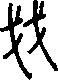 戔“戋”的繁体字。 上一条: 戋 下一条: "> 戔zieng31[tsieŋ]不成熟,幼稚 ⊳戔瓜无瓤, 戔囝无腹肠〈谚〉(不成熟的瓜没有瓤,幼稚的孩子没心计)。 戋戔ㄐㄧㄢjiān一1158形(瓜果)不熟。闽语。福建宁德〖 〗、福清〖 〗、福鼎澳腰〖 〗。   戔91E2 ㈠jiān“戋”的繁体。 ㈡cán〈文〉与“殘”(残)”同(见《说文解字》)。 戔jiānJ064 “戋”的繁体。 戔·戋jiān (甲) (篆) 会意字,甲骨文为两“戈”相向。小篆为两个“戈”字重叠,意为短兵相接的格斗、厮杀。《说文》:“戔,贼也。”《经典释文》:“戔,本亦作残。”简体为“戋”,古读为cán。又读为jiān。可与“纤”通,故有微小的意思。“戋戋微物”用的是假借义。作声符生成的字有: jian 阴平:笺(信笺,小的信纸) 浅(象声词,流水声) 去声:践(实践) 贱(卑贱) 饯(蜜饯) 溅(溅落) qian 阳平:钱(金钱) 上声:浅(画眉深浅入时无) xiàn 线(路线) cán 残(残酷) chǎn 刬(同“铲”) zhan 上声:盏(灯盏) 去声:栈(客栈) 相关链接 “残”,左边为“歹”是“死”字的一半,本为枯骨,读cān,可视为声符。战争中相互厮杀,未免残酷。也可作会意字理解。刬、盏、栈系以“残”(省)为声。