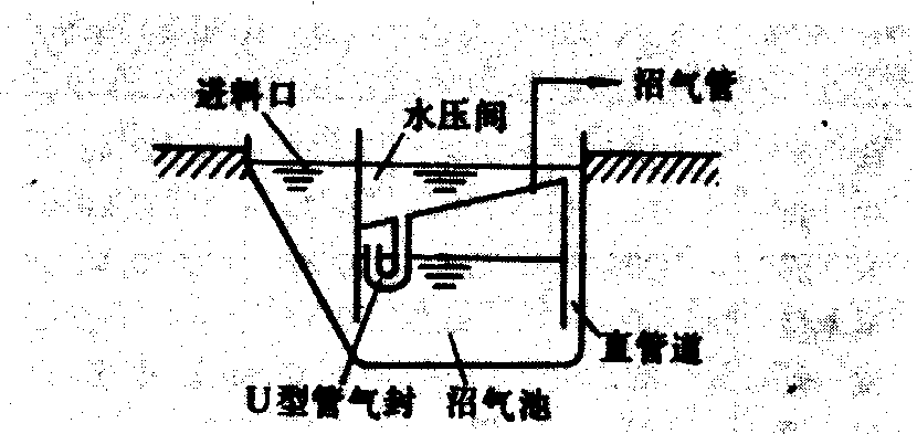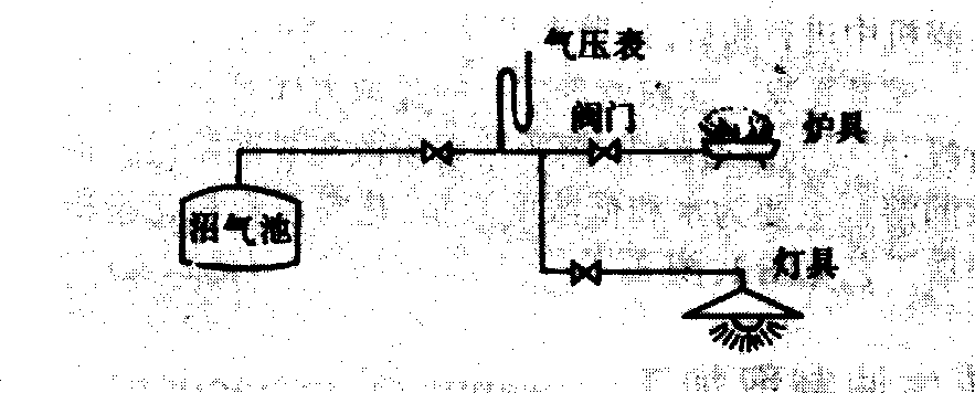 户用沼气池的建造 沼气池可用不同材料修建,但所用材料须考虑池的寿命和经济性等因素。沼气池的使用寿命一般应不低于10年。中国主要采用砖石或混凝土作建池材料。砖石建造采用砌块施工法,无需拱架和支模。混凝土建造采用模具定形浇灌,混凝土强度的平均值不低于标号150号,壁厚一般为6厘米。为保证沼气池的密封性能,,需采用三灰四浆涂抹,最后再增加一层密封涂料,具体施工法详见国家标准GB4750-4752-84。 为实现沼气池商品化、降低成本,可采用掺有抗碱玻璃纤维的早强水泥材料(池壁厚度减至2厘米),或组合式结构的沼气池,省工省料,成本约低于整体浇铸池20%。 使用和管理 沼气池建成后,需试水、试压、确保沼气池不漏水、不漏气后才能进料。事前应按池容准备好充足原料,若利用部分秸秆,则需将其铡成3~5厘米长的短节,然后同粪便和适量的水(以淋湿为准)相混合,原料的配比应满足C:N的要求。混合料中应添加接种物,约占总原料的10%~30%。取自湖泊、池塘底部污泥,粪坑内的沉渣,或旧沼气池的沼渣,使新沼气池迅速产气。混好的原料由沼气池顶部活动盖加入,最好边进料,边压实,使原料在池内停留3~5天。在好氧和兼性微生物作用下,堆沤的原料温度可提高到40~60℃。然后封盖加水,适当用试纸检查其酸碱度,当pH值低于6时,可加适量草木灰、氨水和石灰水,调整pH值到7左右。一般情况下,沼气池封盖后2~3天便能产气,可在炉具上作点火试验。 沼气池的日常管理是影响稳定产气的关键。主要应做到适时加料,检查酸碱度,调整pH值;随时注意产气情况,并检查各连接部位的密封性,有漏气时应即排除。新沼气池使用约30天后,产气量便会显著下降,缩短补充原料的时间,产气波动就小。一般应5~7天加料一次,其投入量应为每日所需量的5~7倍。中国推行沼气池和猪圈、厕所相结合,谓之三结合沼气池,使逐日有定量的粪便直接进入沼气池,周围的卫生条件也得以改善。 户用沼气池的沉渣,平时不易排出,可根据季节施肥需要,一年揭盖大出料1~2次。出料前10天停止进料,出料时保留10%~30%的细碎污泥于池中,有利于下次起动,须特别注意安全,人不要入池,避免因窒息或吸入磷化三氢(PH3)剧毒气体而导致死亡。为使沼气池正常产气,严禁有毒农药和各种杀虫剂以及电石(CaC2)等物入池。 沼气的输送及灯、炉具 由沼气池产生的沼气须经输气元件送达炉具和灯具。输气元件包括管道、管接头、阀门和气压表,其布置如图5所示。 图5 户用沼气池的应用系统 管道是影响压力降的主要部件,管径愈细,线路愈长,压力降愈大。管材采用内径8~12毫米的塑料软管、聚氯乙烯硬管或水、煤气钢管。管道布置应避免弯曲,有一定坡度,以防沼气的凝结水堵塞。管接头有塑料、金属或玻璃制成的二通、三通和四通的几种,以铜制品较好,其内径要和管径相配。阀门是控制沼气流量的部件,常用的有锥形阀和旋塞阀,多以金属和塑料制成。气压表一般装在炉具前,便于查看供炉具使用的沼气压力,也间接了解水压式沼气池内沼气的贮量,一般多采用U形玻璃管压力表。 炉具和灯具是利用沼气直接燃烧的主要设备, 对一般家用炉具, 取热负荷为10 000千焦/小时为宜,灯具的热负荷为1700千焦/小时。 |