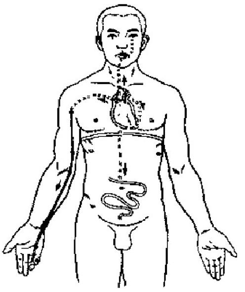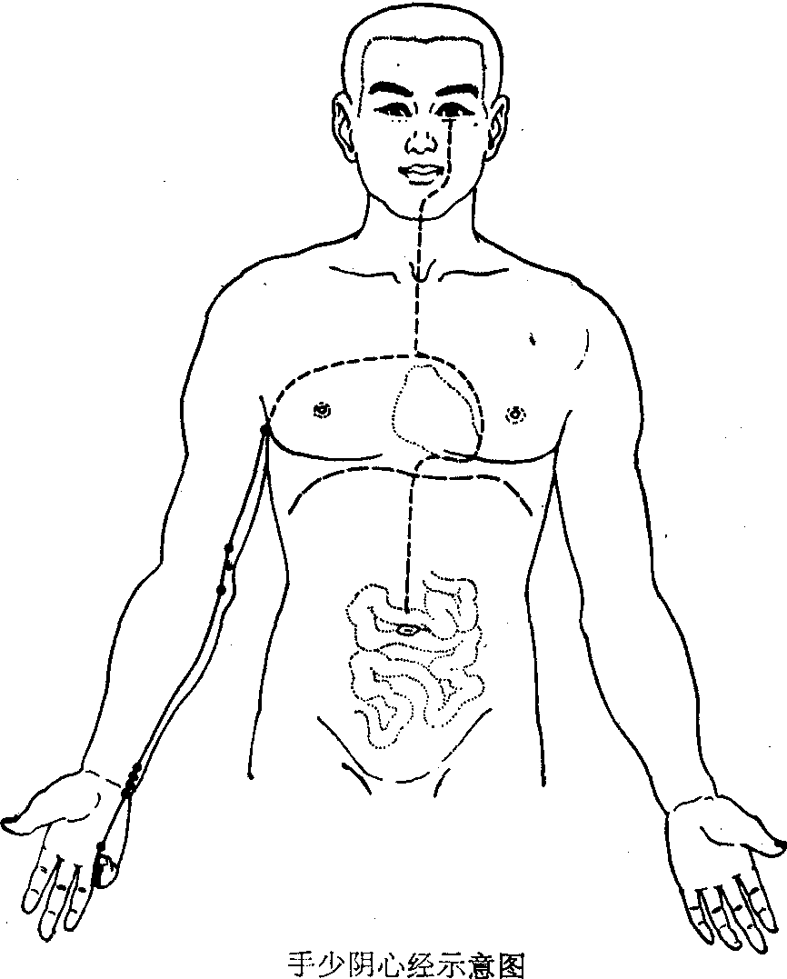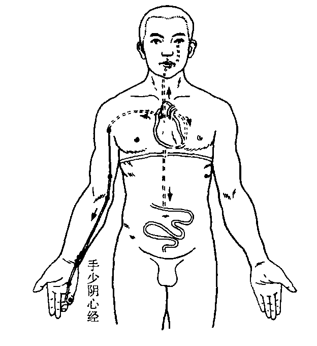 释义 | 手少阴心经 手少阴心经十二经脉之一。《灵枢·经脉篇》说:“心手少阴之脉,起于心中,出属心系,下膈,络小肠。其支者从心系,上挟咽,系目系。其直者,复从心系却上肺,下出腋下,循臑内后廉,行手太阴心主之后,下肘内,循臂内后廉,抵掌后锐骨之端,入掌内后廉,循小指之内,出其端。”气功锻炼中,意守这条经脉中的神门穴位(原穴),可以防治五脏六腑之疾。参见《意守十二经中的“原穴”法》条。 ☚ 手少阳三焦经 手厥阴心包经 ☛ 古代名物 > 人體類 > 其他部 > 經絡 > 臂少陰脈 > 手少陰心經 手少陰心經 shǒushàoyīnxīnjīng 同臂少陰脈。 手少阴心经十二经脉之一。 代号HT。 《灵枢·经脉》: “心手少阴之脉,起于心中, 出属心系, 下膈, 络小肠; 其支者, 从心系, 上挟咽,系目系; 其直者, 复从心系, 却上肺, 下出腋下, 下循臑内后廉, 行太阴心主之后, 下肘内,循臂内后廉,抵掌后锐骨之端,入掌内后廉,循小指之内出其端。”本经自心中起始, 出来属于心系 (心脏周围脉管等组织), 向下贯穿膈肌,联络小肠。 它的分支,从心系向上, 夹着食道上端两旁, 连系目系 (眼球与脑相连的组织); 它外行的主干, 从心系上肺, 斜走出于腋下 (极泉), 沿上肢前边, 行于手太阴肺经和手厥阴心包经的内侧, 下行肘节(少海), 沿前臂尺侧,到手掌后豌豆骨突起处 (神门), 进入掌中, 沿小指桡侧出其末端(少冲)。 脉气由此与手太阳小肠经相连。本经发生病变, 主要表现为咽干,心痛, 口渴, 目黄, 胁痛和上肢前边内侧本经脉过处厥冷, 疼痛, 掌中热痛等 (图31)。 图31 手少阴心经十二正经之一。循行路线是: 起于心中,出心脏所属的经脉,下横膈,络小肠。它的支脉,由心脏上挟咽喉,连系于眼球后脑的脉络。它的直行脉,从心到肺,横出腋下,沿上臂内侧后缘过肘,沿小指内侧至尖端,与手太阳经相交。本经生病时,主要症状有咽干、口渴、目黄、胁肋疼痛,沿本经走行部位的肢体疼痛、厥冷或掌心热痛。 手少阴心经The Heart Channel of Hand-Shaoyin系十二经脉之一。此经起始于心中,向下过膈联络小肠。有一支脉挟食道上行,连系眼睛。直行的经脉,从心上行至肺,再向上出腋窝,沿上肢掌侧面的尺侧缘下行,进入手掌中,经4、5掌骨之间,到小手指桡侧端。掌握此径循行,对诊治本经所属器官疾病及选取本经上的针灸穴位极为重要。 手少阴心经十二经脉之一。《灵枢·经脉》:“心手少阴之脉,起于心中,出属心系,下膈,络小肠;其支者,从心系,上挟咽,系目系;其直者,复从心系,却上肺,下出腋下,下循臑内后廉,行太阴心主之后,下肘内,循臂内后廉,抵掌后锐骨之端,入掌内后廉,循小指之内,出其端。”本经发生病变主要表现为:咽喉干燥,心痛,口渴,目黄、胁痛,上臂、前臂内侧后边本经所过处厥冷,疼痛,掌中热痛等。 手少阴心经shǒushàoyīnxīnjīng十二经脉之一。原称心手少阴之脉。出《灵枢·经脉》。从心中开始, 出属于心系(联系心脏的组织), 下经横隔, 联络小肠;其支脉从心系夹食道上行, 联系目系( 眼与脑相连系的组织); 其外行的主干, 从心系上行于肺,出于腋下, 沿上肢掌面尺侧, 到掌后锐骨(豆骨) 进入掌中, 至小指末端桡侧, 与手太阳小肠经相接。本经脉的病候主要表现为咽干, 心痛, 渴而欲饮, 目黄胁痛, 上肢掌面尺侧冷痛, 掌中热、痛等。 手少阴心经 手少阴心经 手少阴心经十二经脉之一。首见于马王堆汉墓帛书,称为“臂少阴温(脉)”或“臂少阴眽(脉)”,其循行是由手至胸。在《灵枢·经脉》中的记载,更为详尽,名为“心手少阴之脉”。现通称手少阴心经。 病候 目黄,咽干,胁痛,上肢内侧疼痛并厥冷,手掌心热痛,心痛,口渴等。 本经腧穴 极泉、青灵、少海、灵道、通里、阴郄、神门、少府、少冲,共九穴。 ☚ 足太阴脾经 手太阳小肠经 ☛ 手少阴心经shǒu shào yīn xīn jīngheart meridian of hand-shaoyin; heartchannel of hand-shaoyin |