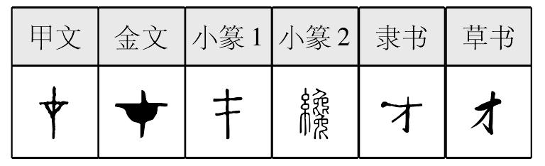 ❹八斗之才|博学多才|将遇良才|经国之才|经世之才|旷代奇才|旷世奇才|绵力薄才|末学辁才|念旧怜才|七步之才|人尽其才|文武全才|稀世之才|一表人才|用人唯才|尊贤爱才 才才,甲骨文作  ,金文作   ,小篆作 。 或以爲象草木破土鑽出地面之形,或以爲是 “弋” 的分化字,本義難明。隸定作 “才”。文獻以材質、才能、人才爲基本義。或用作 “在”“財”“哉”“裁”。用作僅僅、剛剛義,後世多借 “纔”代之。卜辭、銘文多用爲 “在”。 楚簡帛文作    ,沿襲古體。秦簡牘文作 ,古隸典型。 才cái (甲) 甲骨文像草木刚发芽冒出地面,引申为副词。“小荷才露尖尖角,早有蜻蜓立上头。”作声符生成的字有: cái 材(材料) 财(财富) chái 豺(豺狼) zài 在(存在) cún 存(生存) 相关链接 1.“闭”,金文中间是“十”,表示门闩,本义为关门。小篆在“十”字上加了一根斜杠“/”,似乎是两条门闩,楷书变成了“才”。 2.“在”,甲骨文是左右结构,小篆将“土”置于“才”字一横的右下方,隶书、楷书变为半包围结构,声符“才”变得难以辨认。“在”,本义为慰问、问候,与“存”同义。《大戴礼记·曾子立事》:“存往者,在来者。” 3.“存”,“子”为形,本义为问候,存恤,结构与“在”相仿,一般认为是以“才”为声符,其实,“存”的声符以“寸”(cùn)更为贴近。
