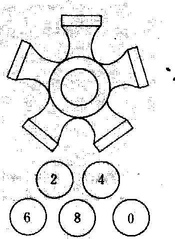 释义 | 打号印log marking原木和原条经检尺后将长级、径级及等级标志在材身上的作业。有了这种标志则便于对木材的识别、记录及交接验收。有手工打号印和机械打号印两种。手工打号印以钢印为主,也可用蜡笔、毛刷或漏字板。为避免木材经长途运输后号印不清,还可将金属牌钉在木材上。原条、原木的长级一般不用号印,用蜡笔或毛刷以阿拉伯数字标志。径级号印则用印锤,有5个圆面印头,分别铸0,2,4,6,8字样,如图所示。0表示10,20,30,…;2表示12,22,32,…;4表示14,24,34,…;6表示16, 26, 36,…;8表示18, 28, 38,…厘米。等级号印式样似径级号印,其代表符号是:原木一等⨺,二等⊜,三等 径级钢印图 |