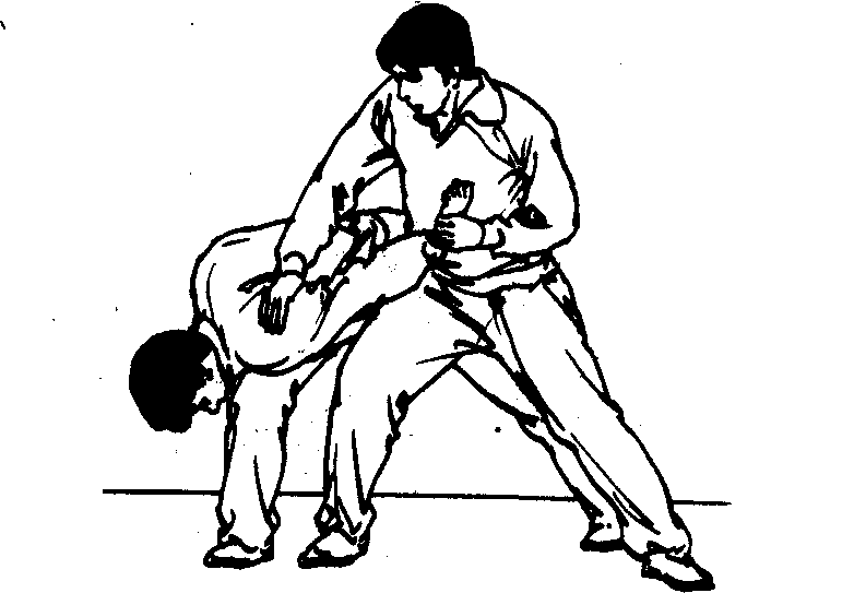 肩部擒拿法。当对方以左直拳进攻时,我右闪躲以左手抓握其腕部,同时进右步,以右手抓按其左肩处,左手顺势扭推,使其肩部处于被动状态。
