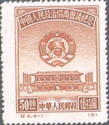 释义 | 中国人民政治协商会议纪念 发行日期:1950年2月1日 齿孔度数:14 印刷版别:雕刻版 图幅:(1)(2) 23.5×31;(3)(4) 31×24 全张枚数:(1)(2) 50(10×5);(3)(4) 50(5×10) 设计者:张仃、钟灵 雕刻者:贾炳昆、高品璋、贾志谦、孙鸿年、刘国桐 印刷:大东书局上海印刷厂 (1)50元 北京新华门及政协会徽 80万枚 (2)100元 北京新华门及政协会徽 80万枚 (3)300元 毛主席像及政协会场 60万枚 (4)500元 毛主席像及政协会场 40万枚 (1)-(4) 4枚全 再版发行日期:1955年1月10日 印刷:北京中国人民印刷厂 (1r)50元 北京新华门及政协会徽 (2r)100元 北京新华门及政协会徽 (3r)300元 毛主席像及政协会场 (4r)500元 毛主席像及政协会场 (1r)-(4r) 4枚全 原版 再版 原版 再版 |