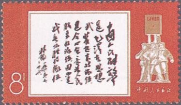 释义 | 中国人民解放军建军四十一周年 发行日期:1968年8月1日 齿孔度数: 印刷版别:雕刻和影写版 票幅:52×31 全张枚数:50(5×10) 设计者:孙传哲 雕刻者:孙鸿年 印刷:北京邮票厂 (1)8分 林彪题词 5000万枚 1枚全 |