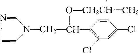 释义 | 抑霉唑imazalil又名烯菌灵。杂环类杀菌剂。化学名称:1-〔2-(2,4-二氯苯基)-2-(2-烯丙氧基)乙基〕-1H-咪唑。化学结构式如下。原药黄棕色油状液体,微溶于水,易溶于有机溶剂,室温下无光保存,性质稳定,对热(285℃以下)稳定。其硫酸盐为无色粉末,易溶于水、醇,微溶于有机溶剂。1972年由詹森医药公司作为试验性杀菌剂推广,为内吸性杀菌剂。对长蠕孢菌、镰刀菌、壳针孢菌有特效。可作为谷物的拌种剂,亦用于果树、蔬菜、花卉的叶面喷洒,加入含蜡乳液或水乳液中浸渍收获后的柑橘、香蕉等可防止贮藏病害。对大鼠急性口服LD50320 mg/kg,经皮LD50为4 200~4 880 mg/kg。 |