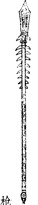 ☚ 芦叶枪 拐刃枪 ☛ 抓枪 抓枪古代稀有兵器的一种。刃长一尺五寸,杆长有六尺,枪上共有大小刺二十个,最长的刺为三寸,最短的刺为一寸,其他各刺均相差一分。此兵器具有刺、拿、扎、提、拦、崩、点、挑、拨、缠、扫、摔、锯、抓、拉、擒等作用(图51)。 图51 抓枪 ☚ 花枪 杨家枪 ☛ 抓枪宋兵器名。共两种。一种专用于守城,其杆长二丈四尺,上为长一尺铁刃,下有四个逆须,连袴长二尺。另一种专用于攻城,其刃长一尺五寸,后有四个逆须,杆长六尺,前二尺设鸡距状铁刺,为头车、绪棚及地道中所用兵器。 抓枪宋代兵器名。有2种。一种专用于守城,其杆长2.4丈,上为长1尺铁刃,下有4个逆须,连袴长2尺。另一种专用于攻城,其刃长1.5尺,后有4个逆须,杆长6尺,前2尺设鸡距状铁刺,为头车、绪棚及地道中所用兵器。 |