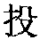 【提示】殳, 上面是 , 末笔不带钩,不要写成几。 *投tóu7画 手部 (1) 掷向(一个目标);扔: ~篮|~掷|~笔从戎。 (2) 放进去: ~资|~票|~入。 (3) (人)跳进去(多指自杀): ~井|~江|~水。 (4) 相一致;合得来: 相~|~合|~机|~其所好。 (5) 寄出;送出: ~稿|~递。 (6) (光线等)射向: ~射|~影。 (7) 前去依靠,前去加入: ~奔|~靠|~考|~宿。 (8) 〈口〉 把浸泡、揉搓好的衣服用清水漂洗干净。 投 ☚ 撫 抉 ☛ 投tóu小篆以来的形声字。从扌(手),殳(shū,象手拿兵器或棍棒等)声。声母演变如输偷、寿涛、是提例。抛,掷,扔。如:投石。引申指跳进去。如:投河|投井。组词如:投票|投资。又指走向,进入。如:投宿|投入战斗。组词如:投奔(-bèn)。引申指寄,递送。如:投稿。组词如:投递。转义为合。如:情投意合|投其所好。组词如:投机。 投★常◎常