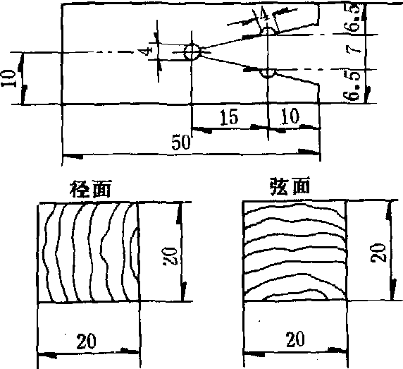 释义 | 抗劈力cleavage木材抵抗劈开的能力。抗劈力的大小反映木材沿纹理方向劈开的难易和木材钉钉的效果等,对选择适当的箱板、工具柄、建筑构件的连接、地板、家具、纺织木梭、车辆等用材时,木材的抗劈力具有一定的参考意义。使木材劈开的力如同楔子的作用,抗劈力集中于木材裂口的底部,在破坏面上的应力分布是不均匀的。中国国家标准GB 1942—82《木材抗劈力试验方法》,规定了试验抗劈力试样的尺寸和形状如下图,试件分木材的径、弦面,放在试机的 抗劈力试样形状和尺寸图 抗劈试验附样上,以一定的速度施加拉伸荷载直至试样破坏为止。抗劈力按下式计算: ![]() 通直纹理的木材,通常是弦面抗劈力大于径面。具有宽木射线或聚合木射线的阔叶树材,例如青冈、麻栎、椆木等,弦面与径面抗劈力的差异更为显著,这是由于木材弦面抗劈时,木射线处于轴向受拉状态,使抗劈力增强。纹理交错又不具宽木射线的木材抗劈力,有时弦面较径面低或近似。木材密度增高,抗劈力有随之而增大的趋势。但也有不少例外,如安徽产河柳木材的抗劈力,径、弦面分别为17.7兆帕和18.6兆帕。而与之相同密度的裂叶榆木材,径、弦面分别为14.7兆帕和16.7兆帕。木材含水率的变化对抗劈力的影响很小,且不规律。 抗劈力cleavage木材抵抗劈开的能力。抗劈力的大小反映木材沿纹理方向劈开的难易和木材钉钉的效果。对选择适当的箱板、工具柄、建筑构件的连接、地板、家具、纺织木梭、车辆等用材时,木材抗劈力具有一定的参考意义。 |