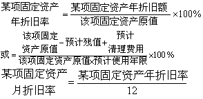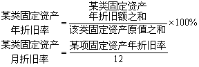 ❷类别折旧率: 以某类固定资产为单位计算的折旧率,计算公式如下: