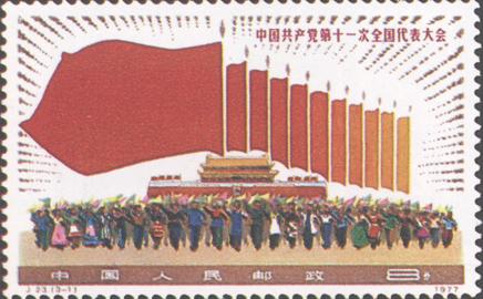 | 释义 | 中国共产党第十一次全国代表大会 发行日期:1977年8月22日 齿孔度数: 印刷版别:影写版 票幅:60×40 全张枚数:25(5×5) 设计者:万维生 印刷:北京邮票厂