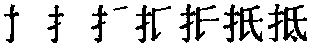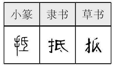【提示】在异体字整理前,表示 “互相对立、排斥” 的意思、用在 “抵触” “抵牾” 等词中,“抵” 的异体是 “牴” 和 “觝”; 表示“支撑” “挡住” “抵消”“抵偿” “到达” 等意思时,“抵” 没有异体。氐,第二笔是一竖提,不是一竖、一提两笔; 末笔是点,旧字形是横。 *抵1dǐ8画 手部 (1) 顶着;支撑: 椅子背上有个东西~得腰疼|把门~住。 (2) 阻挡;反抗: ~挡|~抗|~御。 (3) (价值等)被认为相当、相同: ~偿|~消|一命~一命|一台电脑的工作量~得上好多人。 (4) 抵押品,借款时作为偿还保证的财产: 用房子作~贷款。 (5) 到达: ~达|明日~京。