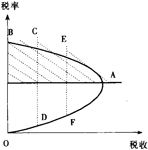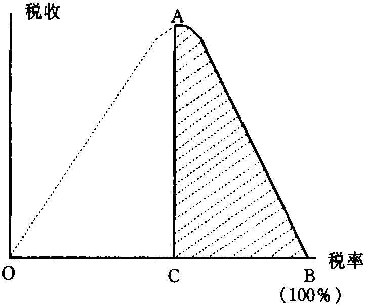 释义 | 拉弗曲线表示税率和税收收入之间数量关系的一条曲线。由美国经济学家拉弗(Arthur B.Laf-fer)于20世纪70年代提出而得名。拉弗认为,带来一定量税收收入的,通常有两种不同的税率。例如,尽管T3点的税率高于T1点的税率,但得到的税收收入都为R1;而T4点税率为100%,和零税率一样得不到任何税收收入。因为,这样高的税率,使得应纳税的经济活动都停止了。拉弗相信,降低税率将会刺激经济活动,从而带来较多的税收收入。而美国20世纪70年代的税率太高,从而使得经济萎缩。复苏经济的主要办法,是通过减税来刺激供给的增加。拉弗曲线成为供给经济学的主要理论基础之一。如图: 拉弗曲线Laffer curve该曲线由美国供给学派经济学家A.拉弗 (A.Laffer) 提出,并用于说明政府税收和税率之间的关系。如图所示: 图中Ot代表税率,OR代表由收入与税率共同决定的税收。向上凸起的OB即拉弗曲线。原点O表示税率为零时税收也为零,B表示税率为100%时,税收也为零,因为这是人们要把全部的收入用来纳税,则无人愿意再工作或投资,从而政府税收也为零。拉弗曲线即以这两个极端为极限,税率为OC时开始转折的一条曲线。当税率提高至C点时,政府税收达到最大,为OR0。在这一阶段,拉弗曲线是上升的,这一阶段税率的提高会增加政府税收,而不会对收入产生不利影响。如果税率再提高,这时拉弗曲线是下降的,由于高税率挫伤了人们生产与投资的积极性,收入减少,政府税收也减少了。可见,C点是最优税率,大于C点的税率会使收入与税收减少,是税率的禁区。从图中还可以看出,同样的税收可以通过一个低税率和一个高税率来征得的。图中的税收OR1,就可以通过低税率E点和高税率F点征得。但由低税率征得有利于促进人们生产和投资的积极性,使国民收入增加; 而通过高税率征得却压抑了人们生产和投资的积极性,使国民收入减少。通过低税率来刺激生产和投资,在国民收入提高的基础上增加政府税收是有利的。拉弗认为,当时美国的税率已进入税率禁区,对经济产生了不利影响,美国政府应该进行大规模的减税,拉弗曲线正是供给学派和里根政府减税政策的理论依据。 拉弗曲线Laffer Curve当代西方经济学用来表示税率与国家的生产和财政收入关系的曲线。由美国经济学家拉弗提出。以纵轴代表税率,横轴代表由税率与生产共同决定的税收额。曲线的两个终端,一端表示税率为零,一端表示税率为100%,该曲线即以两个断点为极限,自E点开始转折的一条曲线(如下图)。以E点为分界,曲线上半部分表示税率从100%逐步下降,曲线下半部分表示税率从零逐步提高。A与B表示提供同等数额的税收,因而A表示很高的税率和很低的生产,B表示很低的税率和很高的生产。若税率从A降至C,生产和税收均较前增加;若税率从B升为D,税收将增加(但生产较税率为B时减少),C与D提供同量的税收。E点代表的税率,是与生产相结合能提供最大税收额的税率。这一理论视税率为生产的决定性因素。实际上,税率的高低对生产虽有一定的影响,但资本主义社会的生产及其变动是由资本主义内在矛盾运动所决定的。 拉弗曲线反映税率与税收总额之间关系的曲线。它是供给学派关于降低税率以刺激生产和经济增长的理论依据之一。由美国供给学派经济学家拉弗(Laffer,Arthur,1941— )提出。以税率为横轴,政府的税收总额为纵轴,拉弗曲线是一个向下的半圆形曲线。拉弗曲线表示,税收总额先是随着税率的增加而增加,但税率增至一定程度后,二者即变为反向关系。显然,对于任何数额的税收总有一高一低的两个税率与之对应,较高的税率由于影响了人们从事生产的积极性,显然不如产生同量税收的较低税率好。拉弗曲线有两个极端:当税率为0时,税收总额为0;当税率为100%时,税收总额亦为0(因为没有任何人愿意进行生产活动)。拉弗认为,美国20世纪70年代以来的税率很高,位于曲线向下的区域之内,它阻碍了人们从事生产的积极性。因此,降低税率可以刺激生产,增加税收总额。 拉弗曲线以美国经济学家A·拉弗的名字命名的、表示税率与政府税收收入之间关系的曲线。拉弗认为在税率与税收收入之间存在一定函数关系,采用高税率,不一定会取得高收入。 拉弗曲线 拉弗曲线Laffer curve以美国经济学家A·拉弗的名字命名的、表示税率与政府税收收入之间关系的曲线。拉弗认为在税率与税收收入之间存在一定函数关系,采用高税率,不一定会取得高收入。如图1-1:横轴代表税率,纵轴代表由税率和生产决定的税收收入。 图1-1 拉弗曲线图 当税率为零时,政府的税收政策不干预生产,这时虽然可能会使生产扩大,但政府的收入却是零,结果会使政府的全部活动停止,整个社会生产处于无政府状态,这对生产同样不利,所以这种税率为零的状态不足取。当税率由零点向右推移时,税收收入会逐渐增加,移至C点时,税收收入达到最大A,生产也会达到最大。因此C点是最佳税率。如果税率继续向右移动,即超过C点继续提高时,税收收入不仅不会增加,反而会下降。如果税率达到100%,生产经营活动就会停止,或被迫转入地下,政府的收入也会降到零。因此,超过C点一直到税率为100%这个区间被拉弗视为“课税禁区”。值得指出的是,拉弗曲线中的C点,虽然处于0~100%之间,但并不一定代表的是50%。它只说明,税率在客观上存在着一个最佳点,达到这一点会使生产和税收