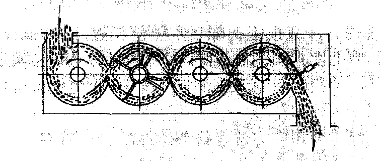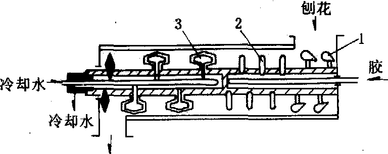 释义 | 拌胶机blender将胶料与刨花均匀混合的机械。按胶料涂抹刨花的方式,拌胶可分为摩擦法、涂布法和喷雾法。❶摩擦法: 将胶料分几次或连续倒入被搅动的刨花料中,靠刨花间相互摩擦作用将胶料分散在每片刨花上。这种方法的拌胶质量决定于搅动刨花的时间。因此生产率较低,在刨花板生产的早期阶段曾被广泛使用。 图1 通冷却水的喷雾式连续拌胶机 离心式喷胶拌胶机 喷雾法喷胶是将胶液雾化后喷出,胶粒难免有过大过小现象,从而影响拌胶质量。离心式喷胶拌胶机克服了这一缺点。该机内的搅拌轴是一空心轴,在轴的前端有进料铲,中部有甩胶管,在甩胶管上开有许多甩胶孔,孔径为2.54毫米。轴后端有搅拌桨。空心的搅拌桨旋转时(约1 000转/分)产生的离心力将甩胶管中的胶液以0.1兆帕的工作压力从甩胶管上的小孔中甩出,分布到刨花表面,经过搅拌桨的搅拌,然后从出料口排出。该机结构见图2。 ![]() 图2 离心式喷胶拌胶机 为避免在搅拌过程中胶液受热提前固化,其外壳也设计成夹套式,通冷却水冷却。这种拌胶机的不足之处是清洗甩胶管比较困难。实际上在工作时甩胶管也参与了搅拌,所以甩胶管的磨损和小孔的堵塞在一定程度上影响了该机的寿命和拌胶质量。 高速拌胶机 结构如图3。该机的拌胶部分由4个卧式长圆形的拌胶箱组成.并且互相沟通。每个拌 图3 四箱式高速拌胶机 胶箱内都装有一根高速搅拌轴,在第二个拌胶箱内胶液由离心方法从甩胶管中甩出,刨花沾上胶后流入第三、四拌胶箱中,在这里刨花相互摩擦,使胶液在刨花中分布均匀。在拌胶箱的下方设有调节仓,用于贮存和输送拌好胶的刨花。为防止胶液提前固化,调节仓的壳体和搅拌器需用冷水冷却。高速喷头拌胶机 这种拌胶机用一个压力雾化喷嘴喷胶。快速搅拌器使刨花从轴向向上运动,已拌好胶的刨花被运送到外围向上部排出。该机结构较复杂,不易清洗,搅拌效果亦不甚理想。 见刨花拌胶。 |
