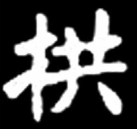 ɡǒnɡ形声,从手,共声,本义为拱手,即两手相合,引申为两臂合围、环绕、肢体弯曲成弧形、建筑物成弧形的、向上或向前顶等。拱〈动〉(1)即拱手,指两手在胸前相抱的动作。 《醒》一: [晁大舍]拿官腔说了两句淡话,自先起身,往外一~。又二二: 傅惠望着任直~一~,道:“多扰,多扰!” (2) 用身体顶动别的东西或掀开土地等。 《金》六十: 你家那杜蛮婆老淫妇,撒把黑豆只好喂猪~,狗也不要他!又七六: 看见画童儿哭,便问:“小大官儿,怎的号啕痛,剜墙~?” 《聊·增》十九: 吃的肚儿大大的,~着个弹儿做干粮。 (3) 比喻排挤;排斥。 《金》四六: 你心地好了去了,虽有小人也~不动你。‖<方>今北京、山东、江苏徐州和云南昆明话有后二义。 |
