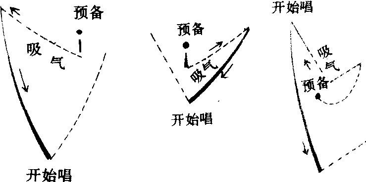 释义 | 指挥的姿势和基本动作 指挥的姿势和基本动作指挥的姿势要求自然松弛,舒展大方。双脚微分开站立,两眼环视合唱队,手微拱做抓物状,掌心向前下方,双手在胸前约20cm处,以手、腕、小臂、大臂、肘关节的循环往复运动,组成指挥的基本动作。指挥的动作原则要求准确、精练和美观。基本动作包括:击拍、起拍和收拍,保持动作和动作的简化、细分等。击拍的动作由下垂、上举、斜行3个方向的线条组成,往返动作之间形成夹角,角的顶点为击拍点,点前动作具有击发力的主动感,反弹动作具有弹起后松弛的被动感。以二拍子为例的图示:击拍点以手掌靠近手腕的部分击出,是一拍的真正开始处,演唱(奏)的整齐与否,关键在此。常用的击拍法如图示(以右手为例):起拍分为“预备”、“吸 ❶预备:双手举起,在歌声开始的前一拍的位置上,双眼环视合唱队员。 ❷吸气:双手原地弹起,击出吸气拍。吸气拍应体现歌曲开始部分的速度、力度、感情。 ❸开始唱:吸气拍后明确果断地打出击拍点,歌声在这里开始。3个步骤有节奏地连贯进行,吸气拍是关键,自吸气至开始唱的击拍点之间,为不吸不呼阶段,这时歌者声带靠拢,想着音高、力 弱拍起 分割拍(第二拍后半拍)起收拍分为“预备”和“收”两个步骤。 ❶预备:歌曲结束音的前一拍反弹动作后,手快速继续提起,提示做收拍准备。 ❷收:紧接预备动作之后打出收拍的点,歌声到此结束。收拍时根据力度的不同,可做手握拳(空拳或实拳)或轻轻捏住的动作。 ☚ 音乐指挥 合唱总谱读法 ☛ |