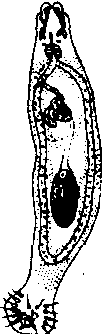 释义 | 指环虫病dactylogyriasis单殖吸虫寄生引起的鱼病。病原体是指环虫(Dactylogyrus spp.)。虫体扁平,前端有2对头器,4个眼点,后固着器上有1对锚钩、7对边缘小钩、横棒2根,卵生。寄生在各种淡水鱼及海水鱼的鳃及皮肤上,主要危害鱼苗、鱼种和观赏鱼类。严重时可引起大批死亡。须用显微镜进行诊断。用敌百虫或高锰酸钾治疗。 指环虫 |