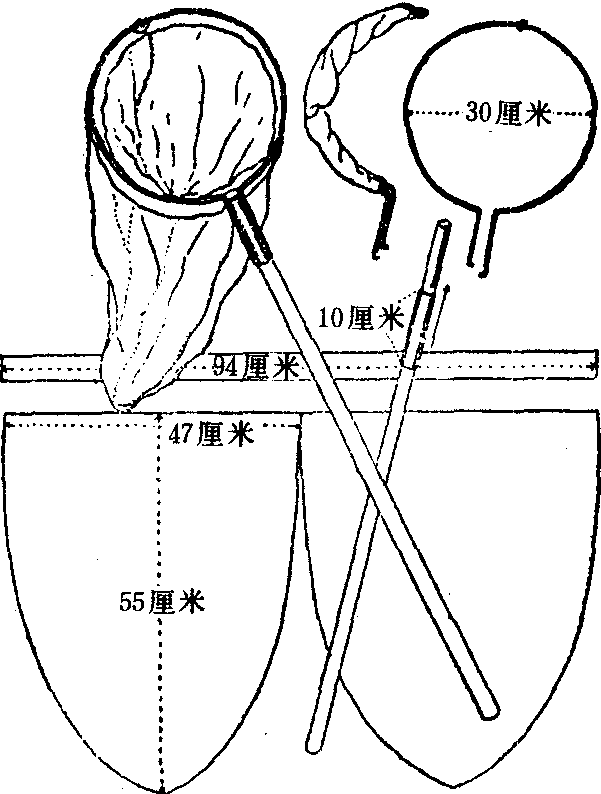 释义 | 捕网 捕网buwang适于迎头捕捉或从旁掠取空中或地面上正在快速飞行昆虫的网。一般的捕网是由网圈、网柄和网身3部分组成。网圈用粗铅丝弯成直径30厘米的圆圈,铅丝的两端折成直角后,再弯成小钩固定在木质网柄的孔内。网柄长约1米左右,直径约1.5~2厘米,距顶端10厘米处,在两侧各挖1条适于放入铅丝的浅沟,沟的末端钻孔,孔的深度要适于网圈末端小钩插入。最后用细铅丝将柄端的粗铅丝牢牢缠紧,或用特制的铁箍套住,更为方便而牢固。如将网圈的粗铅丝正中央剪断,各弯成1个小圈互相套起,即可制成1个能够活动对折的网圈,携带时较为方便。网身用白色或淡绿色的细珠罗纱、绢纱、或蚊帐布均可。需按一定的形状、尺寸剪成缝好,上端另加缝1块长94厘米的窄条白布,用来缝包在网圈的外面,保持网身的深度比网口直径长约1倍,即可制成既通风又适用的轻便捕网。捕网又称气网。 图474 捕网 ☚ 捕虫网 扫网 ☛ |