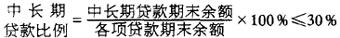 监管当局考核城市信用合作社资产负债比例管理的十个指标之一。其含义为:一年(含一年)期以上贷款余额不得超过各项贷款余额的30%。公式为: