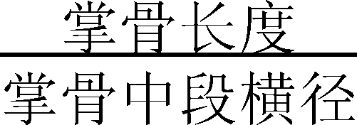 指在手正位X线片上,测量2~5掌骨的长度及中段宽度。掌骨比率=一般认为掌骨比率在8.4以上为异常,见于马范(Marfan)综合征和巨人症。