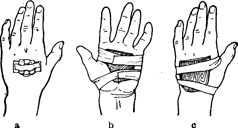 a.分骨垫和压垫放置法 b.掌侧板放置法c. 背侧板放置法