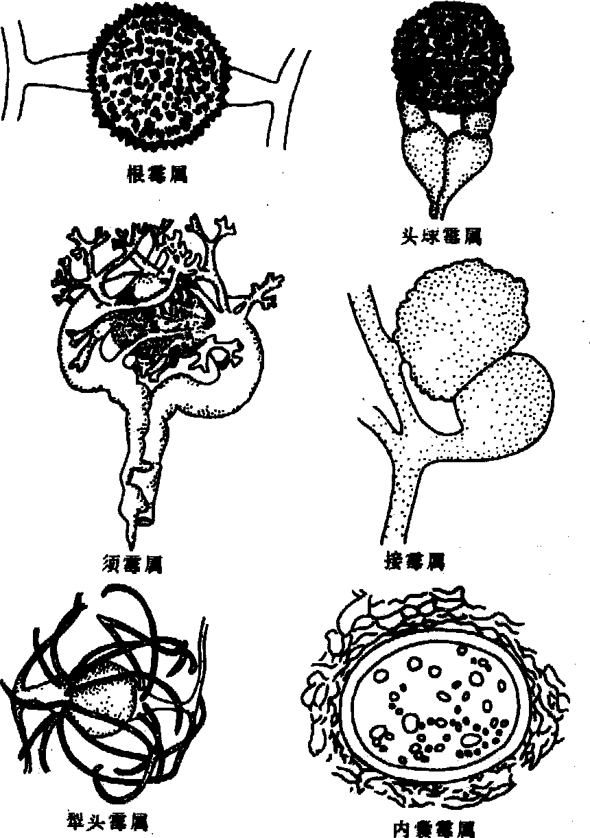 释义 | 接合菌亚门Zygomycotina菌丝无隔膜,有性生殖产生接合孢子,无性繁殖产生孢囊孢子的一类真菌。多数腐生土壤、植物残体、动物粪便和各种有机物上; 少数寄生菌类、植物、动物和人类。其中内囊霉目(Endogonales)真菌与植物根形成共生体,称为菌根,对植物生长发育有利; 毛霉目(Mucorales)的许多真菌可用于生产各种有机酸、酶类和发酵食品。目前划分为2纲10目145属765种。