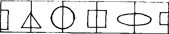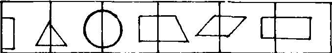 ❷图形接龙卡:如图:卡片的两端是几何图形的一部分,与前后两张图形相拼,可组成完整的几何图形。用图形接