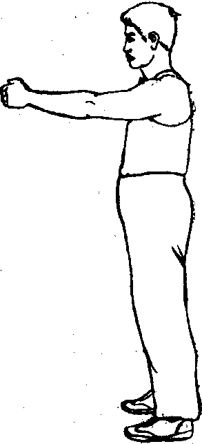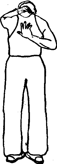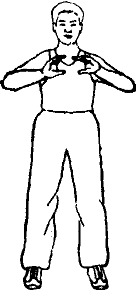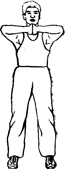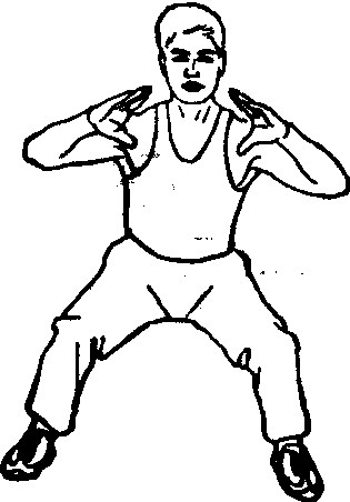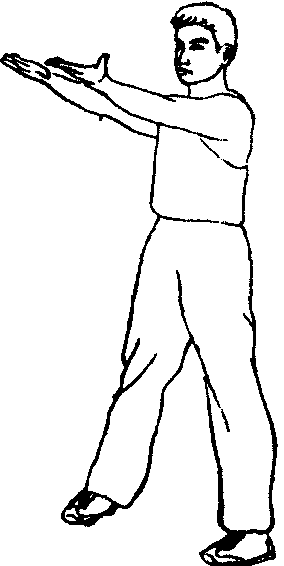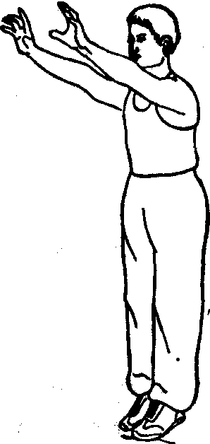 释义 | 推拿练功 推拿练功练功是一种通过特定的形体姿势动作并配合呼吸运动来强健身体,锻炼功夫的方法。推拿练功采用了传统练功法中的某些方法,或加以改进、发展,旨在培养和加强自身的专业工作能力。因为经过不断地锻炼,可以使自己具有充沛的精力,强健的身体,深厚的功夫,持久的体力和耐力(包括腕力、指劲),灵活的关节,敏锐的指感。这样才能熟练掌握和运用推拿手法,增强治疗效果,胜任推拿医疗工作。由于推拿练功是一种整体性的锻炼,所以其中某些方法也适合于病人进行锻炼,以扶正祛邪,调整阴阳,疏通经络,有利于疾病的康复。 韦驮献杵第一势图1-1 ![]() 韦驮献杵第一势图1-2 图2 韦驮献杵第二势 ![]() 图3 韦驮献杵第三势 摘星换斗势 [原文] ❶单手高举 掌须下复 目注两掌 吸气不(慢)呼 鼻息调匀 用力收回,左右同之。 ❷只手擎天掌复头 更从掌内注双眸 鼻端吸气频调息 用力收回左右侔。[动作姿势]❶右足稍向右前方移步,与左足成斜八字形(右足跟与左足弓相对,相距约一拳),随势身向右微侧。 ❷屈膝,提右足跟,身向下沉成右虚步。两上肢同时动作:左手握空拳置于腰后,右手握如钩状下垂于裆前。 ❸右钩手上提,使肘略高于肩,前臂与上臂近乎直角,钩手置于头之右前方。 ❹松肩、屈腕,肘向胸,钩尖向右,头微偏,目注右掌心,舌抵上腭,含胸拔背,直腰收臀,少腹含蓄,紧吸慢呼,使气下沉,两腿前虚后实,前腿虚中带实,后腿实中求虚(图4)。左右两侧交替锻炼,要求相同。 ![]() 图4 摘星换斗势 倒拽九牛尾势 〔原文〕 ❶小腹运气空松 前跪后腿伸直 二目观拳 两膀用力。 ❷两骽后伸前屈 小腹运气空松 用力在于两膀 观拳须注双瞳。〔动作姿势〕 ❶左腿向左平跨一步(其距较两肩为宽),两足尖内扣,屈膝下蹲成马裆势。两手握拳由身后划弧线形向裆前,拳背相对,拳面近地,随势上身略前俯,松肩,直肘,昂头,目前视(图5-1)。 ❷两拳上提至胸前,由拳化掌,成抱球势,随势直腰。肩松肘曲,肘略低于肩,头端平,目前视(图5-2)。 ❸旋动两前臂,使掌心各向左右(四指并拢朝天,拇指外分,成八字掌,掌应挺紧),随势运劲徐徐向左右平(分)推至肘直。松肩,直肘,腕背屈。腕、肘、肩相平(图5-3)。 ❹身体向右转侧,成右弓左箭势(面向左方)。两上肢同时动作: 右上肢外旋,屈肘约成半圆状,拳心对面,双目观拳,拳高约与肩平,肘不过膝,膝不过足尖,左上肢内旋向后伸,拳背离臀,肩松,肘微屈,两上肢一前(外旋)一后(内旋)作螺旋劲,上身正直,塌腰收臀,鼻息调匀(图5-4)。左右两侧交替锻炼,姿势相同。 ![]() 图5-1 倒拽九牛尾第一势 ![]() 图5-2 倒拽九牛尾第二势 图5-3 倒拽九牛尾第三势 ![]() 图5-4 倒拽九牛尾第四势 出爪亮翅势 〔原文〕 ❶掌向上分 足趾拄地 两胁用力 并腿立直 鼻息调匀 目观天门 牙咬 舌抵上腭十指用力 腿直 两拳收回 如挟物然。 ❷挺身兼怒目推手向当前 用力收回处 功须七次全。〔动作姿势〕 ❶两手仰掌沿胸前徐徐上提过顶,旋腕翻掌,掌心朝天; 十指用力分开,虎口相对,中、食指(右与左)相接;仰头,目观中、食指交接之处,随势足跟提起,离地约三、四寸,以两足尖支持体重。肘微曲,腰直,膝不得屈(图6-1)。 ❷两掌缓缓分开向左右而下,上肢成一字平举(掌心向下),随势足跟落地。翻掌,使掌心朝天,十指仍用力分开,肩、肘、腕、掌相平。 ❸两仰掌化拳,由身后向腰,成仰拳护腰势。 ❹两仰拳化俯掌(拇指相接,十指用力分开),由胸前徐徐向前推至肘直,随势足跟提起,离地约三、四寸,继而两掌背屈,使掌心朝前,指端向上,十指仍用力分开,目向前平视,肩、肘、腕相平,直腰,膝勿屈(图6-2)。 ![]() 图6-1 出爪亮翅势 ![]() 图6-2 出爪亮翅势 九鬼拔马刀势 〔原文〕 ❶单膀用力 夹抱颈项 自头收回 鼻息调均 两膝立直 左右同之。 ❷侧首弯肱抱顶及颈 自头收回 弗嫌力猛 左右相轮 身直气静。〔动作姿势〕 ❶足尖相衔足跟分离成八字形,腰实腿坚,膝直足霸。同时两臂向前成叉掌立于胸前(图7-1)。 ❷运动两臂: 左臂经上往后,成钩手置于身后 (松肩直肘,钩尖向上),右臂向上经右往胸前(松肩、肘略屈,掌心向左,微向内凹,虎口朝上),掌根着实,蓄劲于指。 ❸右臂上举过头,由头之右侧屈肘俯掌下复,使手抱于颈项;钩手化掌,使左掌心贴于背,在生理许可范围内尽可能向上。 ❹头用力上抬,使头后仰;上肢着力,掌用劲下按,使头前俯;手项争力。挺胸直腰,腿坚脚实,使劲由上贯下至踵。鼻息调匀,目微左视(图7-2)。 ❺运动两臂: 左掌由后经上往前,右上肢向前回环,左右两掌相叉立于胸前。左右交换,要领相同。 ![]() 图7-1 九鬼拔马刀势 ![]() 图7-2 九鬼拔马刀势 三盘落地势 〔原文〕 ❶目注牙呲 舌抵上腭 睛瞪口裂 两腿分跪 两手用力抓地 反掌托起 如托千金两腿收直。 ❷上腭坚撑舌 张眸意注牙 足开蹲似踞手按猛如拏 两掌翻齐起 千觔重有加 瞪睛兼闭口起立足无斜。[动作姿势]❶左腿向左平跨一步,两足之距较肩为宽,足尖内扣,屈膝下蹲成马裆势,两手叉腰。腰直胸挺,后背如弓,头端平,目前视。 ❷两手由后向前抄抱,十指相互交叉而握,掌背向前,虎口朝上,肘微屈曲,肩松;两上肢似一圆盘处于上胸。 ❸由上势,旋腕转掌,两掌心朝前。运动上肢,使两掌向左右(划弧线)而下,由下成仰掌沿腹胸之前徐徐运劲上托,高不过眉,掌距不大于两肩之距。 ❹旋腕翻掌,掌心朝地,两掌(虎口朝内)运劲下按,(沿胸