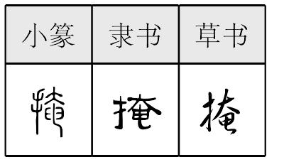 掩yàn缫丝抽绪。例:从众多的线头里,揂(yǒu)~出一个线头来。 ❍ 从书架里抽~一本书来。 《集韵》:“掩,缫丝以手振出绪也。” 掩两边衣襟相叠遮住胸怀。 掩〔yan〕yad: ~门。yadbax zhux. 掩藏 〔yan cang〕 rad. 掩耳 〔yan er〕 ncud mloux. 掩盖 〔yan gai〕jid ngad; jidqad. 掩埋 〔yan mai〕liangl. 掩饰 〔yan shi〕jid qad. 掩ang31[aŋ]掩上 (门)。 掩《广韵》衣儉·琰;yǎm‖yǎn覆盖;掩埋:~死狗yǎm sǐgǎo ❍ 扛去~gngkì yǎm(扛去掩埋)。《说文》:“掩,斂也。”《三国志·魏志·崔琰传》:“今道路暴骨,民未見德,宜勑郡縣,掩骼埋胔,示憯怛之愛。”《南史·齐纪上·武帝》:“甲子,詔都下二縣,墳墓毁發,隨宜掩埋,遺骸未櫬者,並加劍瘗。” 掩{}四5343①动挤;卡;夹。⑴东北官话。东北〖 〗。她手被门~了,怪不得使劲儿哭。⑵北京官话。北京〖 〗。车门把我脚~了。⑶冀鲁官话。山东聊城〖 〗。关窗户,把手~了下子。河北东部〖 〗。②动藏;躲藏。⑴胶辽官话。山东长岛〖 〗。你把我的帽子~哪儿去了?山东莱阳。1935年《莱阳县志》:「藏曰~。」⑵吴语。江苏苏州〖 〗。~辣门角落里躲在门后。苏州评话《玉蜻蜓》第三二回:「~在云房门旁边。」江苏丹阳〖 〗。你~在壁角落里做的告做什么?浙江金华岩下〖 〗。佢他~~我落去。⑶闽语。福建寿宁〖 〗、宁德〖 〗。③动埋;埋葬。⑴徽语。安徽绩溪〖 〗。用泥~住。⑵闽语。福建厦门〖 〗。~死狗‖扛去~。④动蹑手蹑脚地走。吴语。江苏苏州。弹词《老子・折子・孝子》第二回:「你是挖空心思来把折子寻,所以深更半夜~进门。」曹汉昌《岳飞》二三:「黑头里勿点火,着仔黑衣裳~过来。」⑤动使人出丑,下不来台。东北官话。东北〖 〗。秦恩和《妯娌会》:「一对儿进屋,往出一献,又~人,又难看。」⑥动搂着。客话。福建永定下洋〖 〗。细人子𠊎会~来睡。⑦动探首张望。闽语。广东揭阳〖 〗。窗□(〖 〗)□(〖 〗),在□(〖 〗)畔~会着厝内个物件窗比较低,在外面张望得到屋子里的东西。⑧动用手帕或毛巾等把水吸干。吴语。上海松江:眼泪~~干。⑨动使小;使弱。吴语。上海:火~眼使火小一点。⑩动止;停留。古方言。《方言》第十二:「~,止也。」清钱绎笺疏:「《宣十二年左氏传》云:『二三子无淹久。』杜预注:『淹,留也。』淹与~声义并相近,均有止义。」⑪动取。古方言。《方言》第六:「~,取也。自关而东曰~。」清钱绎笺疏:「《汉书・货殖传》:『又况掘冢博~,犯奸成富。』…颜师古注云:『~谓袭取人物也。』」⑫动隐蔽。古方言。《方言》第六:「~,𫉁也。」清钱绎笺疏:「《尔雅・释言》:『𫉁,隐也。』郭注云:『谓隐蔽。』」⑬名鳞。吴语。浙江金华岩下〖 〗。鱼~。⑭名痂。吴语。浙江金华岩下〖 〗。癞头~。⑮形小;弱。吴语。上海:火老旺葛,开~眼火很旺,(开关)开小一点。⑯形慢。理发业行话。晋语。山西长子:~~点。⑰形同。⑴古南方方言。《方言》第三:「~…同也。江淮南楚之间曰~。」清钱绎笺疏:「《孔子家语・辨乐解》:『~有四方。』王肃注:『~,同也。』」⑵湘语。湖南。《湖南通志》:「同,南楚曰~。」   掩yǎn❶隐藏;遮盖 △ 遮~|~耳盗铃。 ❷关闭;合上 △ 房门虚~|~卷沉思。 掩揜❶遮蔽;遮盖:~蔽︱~藏︱~护︱~饰︱~盖︱~埋︱~映︱~体︱遮~︱~人耳目︱~耳盗铃︱迅雷不及~耳︱兵来将挡,水来土~。 ❷合上;关闭:~卷(juan)︱~门。 ❸乘人不备而进袭或逮捕:~袭︱~杀︱~入︱~捕。 ❹关门、窗、箱、柜时夹住手或夹住其它东西:~手。 掩yǎn❶ 隐藏,遮盖:掩着口︱掩耳盗铃。 ❷ 关闭,关上:房门掩着︱掩卷深思。 掩(2次) ❶掩抑。~此哀而不去《章·悲》 ❷盖过。~浮云而上征《远》 掩yǎn❶ 盖过,越过。《国语·晋语五》:“尔童子,而三掩人于朝。”韦昭注:“掩,盖也。”《远游》:“掩浮云而上征。”汪瑗集解:“谓出于其上而乘之,若遮覆也。” ❷掩取,捕捉。《九思·守志》:“举天罼兮掩邪。”佚名注:“罼,宿名也。毕有囚奸名,故欲以掩取邪佞之人也。” ❸抑制,止息。《悲回风》:“掩此哀而不去。”洪兴祖补注:“掩,抚也,止也。”蒋骥注:“掩,抑也。” 掩yǎn❶关。如:门虚~着。 ❷被能够开合的东西卡住。如:他上汽车慢了一点儿,车门子把胳膊~住了。 掩yan掩鼻 掩蔽 掩藏 掩盖 掩护 掩卷 掩埋 掩杀 掩饰掩体 掩映 遮掩 虚掩 掩蔽部 掩眼法 掩恶扬善 掩耳盗铃 掩过饰非 掩目捕雀 掩人耳目 掩贤妒善 迅雷不及掩耳 兵来将挡,水来土掩 掩yǎn❶关住;合上;紫鹃放下绡帐,移灯~门出去。(七六·1891)那仙姑知他天分高明,性情颖慧,恐把仙机泄漏,遂~了卷册。( 五·110) ❷遮盖:(平儿)又接过一条大手巾来,将探春面前衣襟~了。(五五·1294)宝钗原是~面哭的,听如此说,由不得又好笑了。(三五·790) ❸隐藏; 掩饰:我为你也弄了一身的病,在这里也不敢告诉人,只好~着。(三二·743)俏平儿情~虾须镯,勇晴雯病补雀金裘。(五二·1203回目) ❹用同“咽”(yan),中止话头:二人只得~住这话,且和他们顽笑。(二七·612)话说他三人因见探春等进来,忙将此话~住不提。(五八·1365)