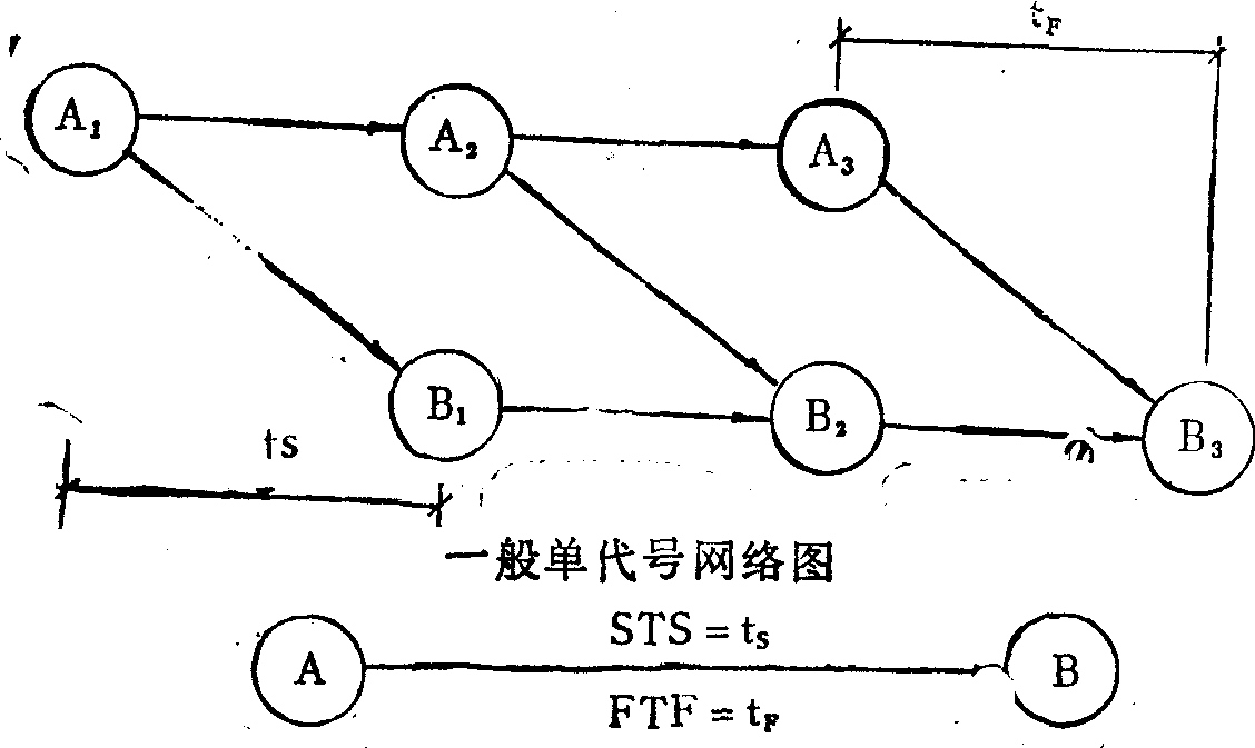 释义 | 搭接网络图绘制方法简化了的网络图。例如下图所示,一般网络图需将工作A分为A1、A2、A3;工作B分为B1、B2、B3,然后才能表明其相互关系。而搭接网络图只标出工作A、B和搭接关系就行了。时间坐标搭接网络图的时间参数不需经过计算,直接从图上得出。标注时间搭接网络图则需经过计算才能得出。 单代号搭接网络图 注: STS——从开始到开始(或称延迟开始)FTF——从结束到结束(或称延迟结束) |