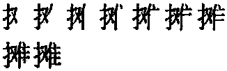 摊tǎn❶ 缓。例:干活蔫~~地慢。 ❍ 这事先撂~几天再说。 ❷倒塌。例:把人跌~了一跤,腿摔~折了! ❍ 房倒把人塌~了! 《广韵》:“摊,缓也。”《醒世恒言·钱秀才错展凤凰 》:“天摊下来,自有长的撑住。” 摊tān得到,遇上。〔例〕你摊上这么个好媳妇,啥都能干,你还不知足啊!(戏91)∣唉!孩子已经摊上啦,还有啥法!(大三152)∣不就是不下奶么。你剁王八王八也不下奶,王八就是王八,明儿我给外甥儿买几桶美国奶粉,贵就贵,谁让他倒霉呢,摊上个没奶的。(刊97.11.73) 摊tan1(动)躺:在卧室里坐定后,他取出短烟杆,抽燃一支叶子烟卷,~在一把破藤椅上,逐渐陷入沉思。(收83·5·86) 摊t‘ 213❶摆开,铺平: 如~场,把庄稼平~在场上晒干,碾净。《说文》: “摊,开也,一曰手布也。” ❷量词:一~血,一~泥。 摊〔tan〕bud lal; badlal. 摊开〔tan kai〕bud lal: 把谷子~晒乾。geud leb beulbud lal shod jid khead. 摊手〔tan shou〕saob doul. 摊子〔tan·zi〕tand zit. 摊tang44[t′aŋ]演练(武术) ⊳伊剑~野好 (他舞剑舞得很好)。 摊攤《广韵》奴但·緩;lnuǎ‖nàn用手出力压或揉:~鹹菜lnuǎ giámcài ❍ ~粞lnuǎ cuè(粞:滤干的米浆) ❍ ~衫裤lnuǎ snākoò(揉搓衣服)。《广韵》“摊,按也。” 摊攤{}五6500①名血;口水;鼻涕。吴语。浙江金华岩下〖 〗。②名把色子放在盒子中摇动,根据点数论输赢的一种赌博方式。吴语。江苏无锡〖 〗。摇~。江苏苏州〖 〗。③动分配到;得到。⑴北京官话。北京〖 〗。那年土改,他家~上一匹大骡子‖合着一个人~十斤土豆儿。⑵胶辽官话。山东长岛〖 〗。我~三斤苹果‖这次长工资我没~上。④动轮到;该。⑴中原官话。江苏徐州〖 〗。他买过~你买‖小孩正~长。⑵江淮官话。江苏淮阴〖 〗。明天~你值班。⑤动散放;乱放。吴语。上海松江:~场子‖~来一天世界到处都是东西。⑥动躺;四肢自然地伸展仰卧。⑴西南官话。四川成都〖 〗。⑵粤语。广东广州〖 〗。𤶊到累得佢~喺张床度在床上。◈ 1983年第五期《收获》:「他取出短烟杆,抽燃一支叶子烟卷,~在一把破藤椅上。」⑦动凉一下。粤语。广东广州〖 〗。粥太焫烫,~冻啲至食凉一下再喝。⑧动坍。吴语。江苏苏州〖 〗。《醒世恒言・钱秀才错占凤凰俦》:「常言道:天~下来,自有长的撑住。」⑨动用手压,磨;揉弄。⑴吴语。浙江定海。民国《定海县志》:「两手相切磨也。」⑵闽语。福建厦门〖 文〗〖 白〗。~面粉‖~衫。台湾〖 〗。~面。⑩动按。中原官话。河南南阳〖 〗。⑪动惹;发生。官话:他~下官司了。⑫动忍受;经受。吴语。浙江金华岩下〖 〗。这起事干事儿弗好~‖佢农𫸻~得他受不了。⑬量张开拇指、食指间的距离。客话。江西赣州蟠龙〖 〗。⑭副只。吴语。江苏苏州〖tߵE44〗。~吃菜,弗吃饭。钱杏珍《赵圣关》:「现在有人佣我到船浪,~吃饭来呒工钿。」   摊攤tān❶铺开;摆开 △ ~牌|~开。 ❷分担;分派 △ 分~|均~|~上一个肥差。 ❸碰上;遇到(多指不如意的事情) △ 这种事谁~上谁倒霉。 ❹摊子❶△~位|~点|摆地~儿。 ❺表示计量 △ 一~水|一大~事情。 摊攤❶展开;摆开:~手︱~牌︱~场(chang)。 ❷把糊状物在锅里摊开使成薄片:~鸡蛋︱~煎饼。 ❸量词,凝聚成一片的东西:一~稀泥︱一~水。 ❹分派;分担:~派︱均~︱分~。 ❺小型售货处,指摆在地上或席、板上的:~子︱~贩︱~售︱地~︱报~︱书~︱旧货~。 ❻碰到;落到:事情~在他身上了。 摊tān❶ 摆开,铺开:摊牌│摊场│把桌布摊开。 ❷ 分担:摊派│均摊。 ❸ 碰上:摊上这样的孩子,够操心了。 【提示】多指不如意的事情。 ❹ 设在路边、广场上的没有店面的售货处:冷饮摊│水果摊。 ❺ 烹饪方法之一:摊鸡蛋│摊煎饼。 ❻ 量词,用于摊开的糊状物或液体物:一摊水│一摊血。 摊tān摆开,铺开。 【词汇】摊派︱摊牌︱摊贩︱分摊 【组词】把稻谷摊开 【例句】你看他坐在石头上,眼睛看着摊在膝盖上的小本子,多么专心哪! ❍ 此事还可以再讨论,大家把所有意见都摊到桌面上来吧。 【近义】摆︱铺 【反义】堆 摊tān❶分配,得到。如:那年土改,他家~上一匹大骡子。/合着一个人~十斤土豆。 ❷遇到,碰上(某时间,某机会)。如:咱们这辈子总算~上好年月了。/今天正好~个大晴天。 摊tan摊场1 摊档2 摊点 摊贩 摊开 摊牌 摊派 摊棚 摊群摊商 摊手 摊售 摊位 摊主 摊子 摆摊 报摊 出摊 地摊 分摊 公摊 货摊 均摊 练摊 铺摊 收摊 书摊 摊tan❶摆开;铺开:把芝麻~开来晒|弟弟在桌上~开一张白纸,兴致勃勃地学写毛笔字|有意见不要藏在心里,大家可以~开来谈谈。 ❷烹饪方法,把糊状食物倒在锅中展开,做成一张大的薄片:~蛋皮儿|~煎饼|这些春卷儿皮是买的还是自己~的? ❸分担;分摊:小李结婚,大家都~了五元钱送礼|去年修红旗水库,你们村儿~了多少个工? |不能随便向群众~钱~物。 ❹碰到;落到(多指不如意的事情):没想到这事儿让你给~上了|好事情怎么~不到我头上|咱们可别~上这种倒楣事。 ❺〈量〉用于摊开的液体或糊状物:地上有一~血|脚踏在一~稀泥上了。 ❻(~儿)摆在地上或设在简易支架上的售货处。一般都设在室外:不准在这摆~儿|他在自家门前摆了个水果~儿|这本旧书是从一个地~儿上买来的。 摊tān使均匀展开:平儿倒在掌上看时,果见轻白红香,四样俱美,~在面上也容易匀净。(四四·1016) 摊tān❶一作“福”或“马楼子”。清末民初江湖社会谓磕头。《海底·各地通行隐语》:“