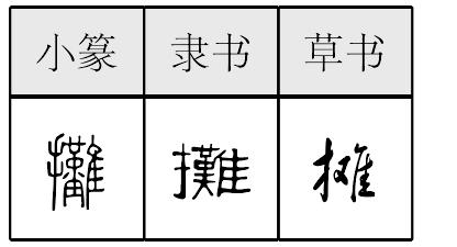 【提示】又,2画,位于字或部件的左边时,末笔的捺改点。隹,不要错写成佳。 *摊(攤)tān13画 手部 (1) 铺开;展开;摆开: ~开桌布|书~在桌上|把卡片~开,慢慢整理。 (2) 分担;分派: ~派|分~|~份子|吃饭的钱咱们俩均~。 (3) 遇到(不如意的事);(不好的事)落在: ~上这样不负责任的老师,算我们倒霉|这种事怎么就~到我头上了呢? (4) 在路边、空场上的简易售货点: ~贩(摆摊的人)|地~儿|旧书~儿。 (5) 烹饪方法,把糊状的原料铺成片煎烤熟: ~鸡蛋|~煎饼。 (6) 量词。用于流淌开的液体,或糊状的东西: 一~血|一~烂泥。 (7) 量词。用于待办的事情: 节前有一大~事要办|每天都有一~杂务等着你,忙不过来。 摊攤tān小篆本作滩。从氵(水),难(難)声。声母演变旁纽双声。如难瘫、黏贴、馁(něi,气馁)妥例。滩指水中有沙石堆,被水冲积,有摊开义。六朝时梁代有摊字。从扌(手),难(難)声。铺开,展开,摆开义。如:摊场(cháng,指把庄稼晾在场上)|摊牌|把问题摊到桌上来|摊鸡蛋(是一种烹饪法)|摊煎饼。转为名词,指摆在地上或用席、板摆设的售货处。如:摊子|水果摊儿。引申为分担财物。如:摊派|每人摊五元。又引申为遇到,碰上。如:这件事偏偏让他摊上了。 摊攤★繁◎常★常