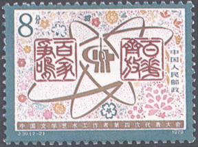 释义 | 中国文学艺术工作者第四次代表大会 发行日期:1979年10月30日 齿孔度数: 印刷版别:影写版 票幅:40×30 全张枚数:50(5×10) 设计者:刘硕仁 印刷:北京邮票厂 (1)4分 文艺的春天 1000万枚 (2)8分 百花齐放 百家争鸣 1200万枚 (1)-(2) 2枚全 |